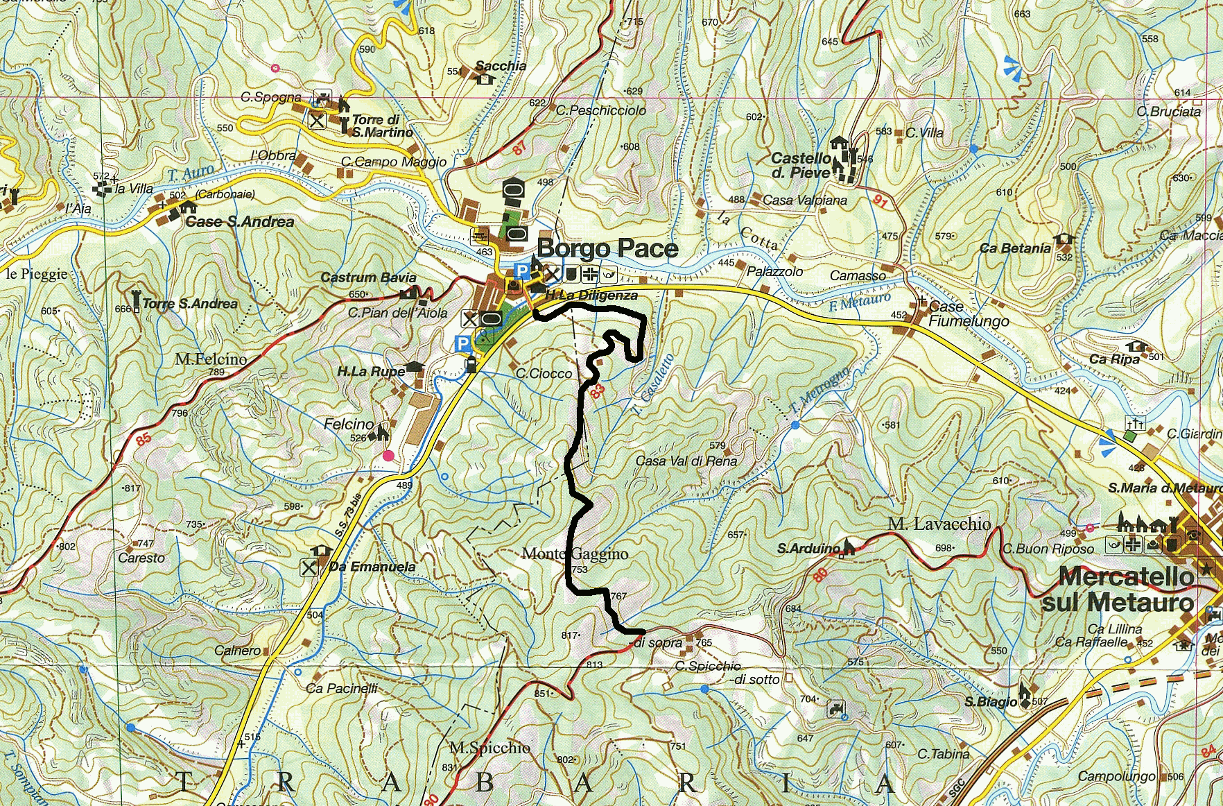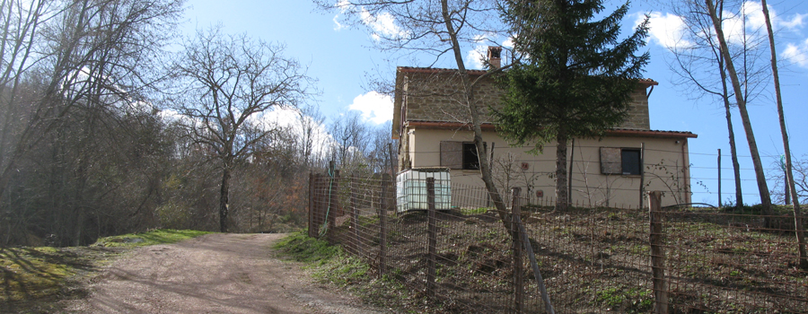Il punto di partenza si trova sulla statale 73 bis, poche decine di metri prima dell’ingresso al paese di Borgo Pace, da dove si imbocca una stradina privata (segnalata da una freccia con il nuovo numero del sentiero, il 480A), posta lato monte, che inizia subito a salire circondata dai boschi, dopo aver oltrepassato una sbarra che delimita la proprietà.