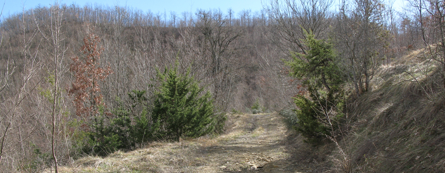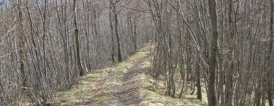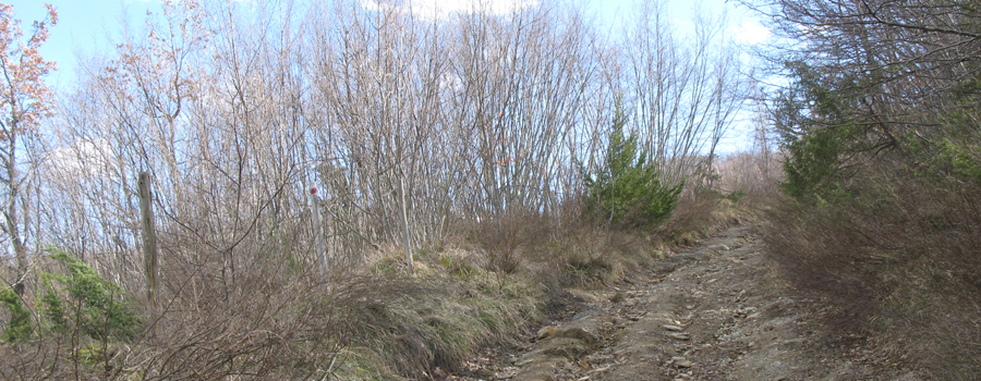 Si giunge in breve ad una abitazione, Casa Ciocco, nei pressi della quale l’ambiente si apre rivelando i bei prati che circondano la costruzione, quindi si rientra nel bosco con la strada che si tramuta in sentiero (sempre comunque molto ampio e facilmente riconoscibile), riprendendo a salire verso il crinale in maniera un po’ più decisa.