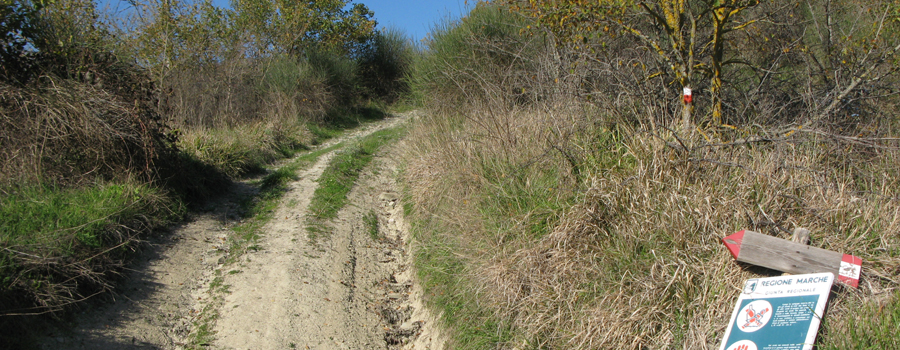 Volgendosi di spalle si può godere di un affascinante panorama sulla valle del Metauro appena lasciata, con Castello della Pieve che appare sempre più piccolo, più basso oramai di alcune centinaia di metri.