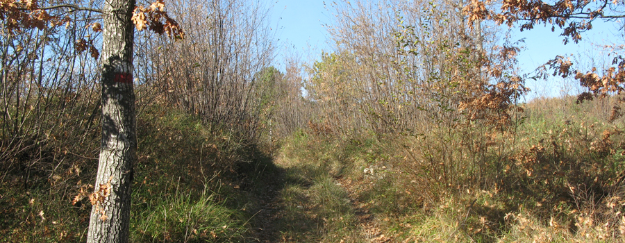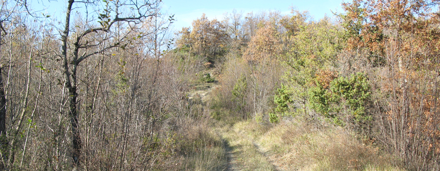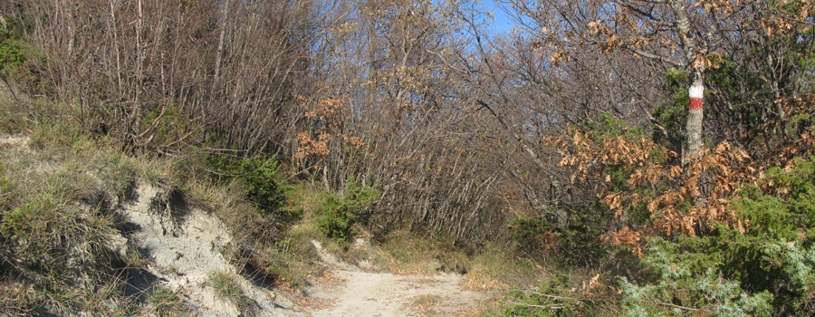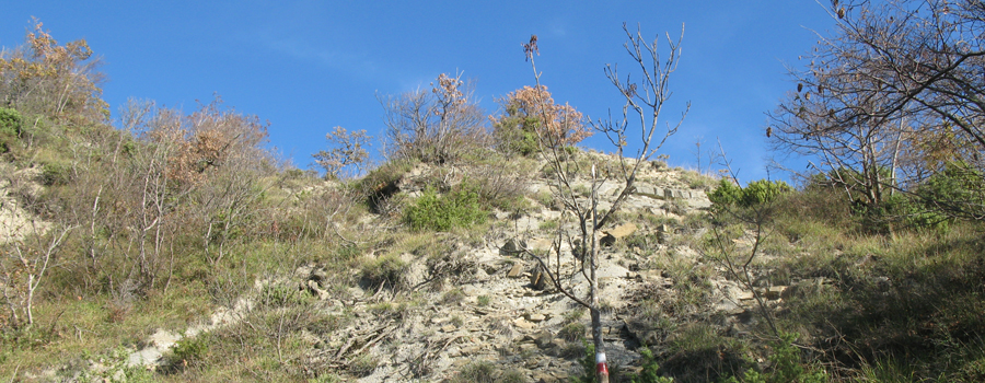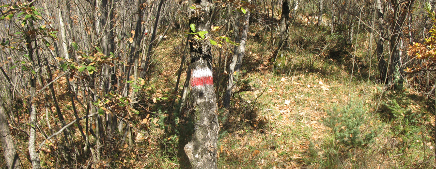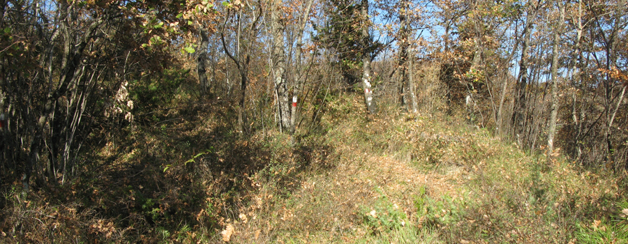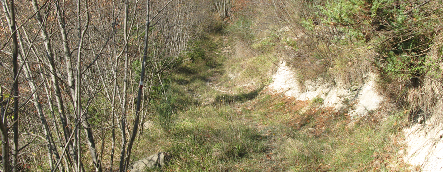 Si percorrono circa 1,3 km in discreta salita prima di raggiungere il suggestivo sito, superato il quale si inizia a percorrere, seguendo i segni rossi sempre ben evidenti, un ripido versante che prende a salire alla volta del crinale soprastante.