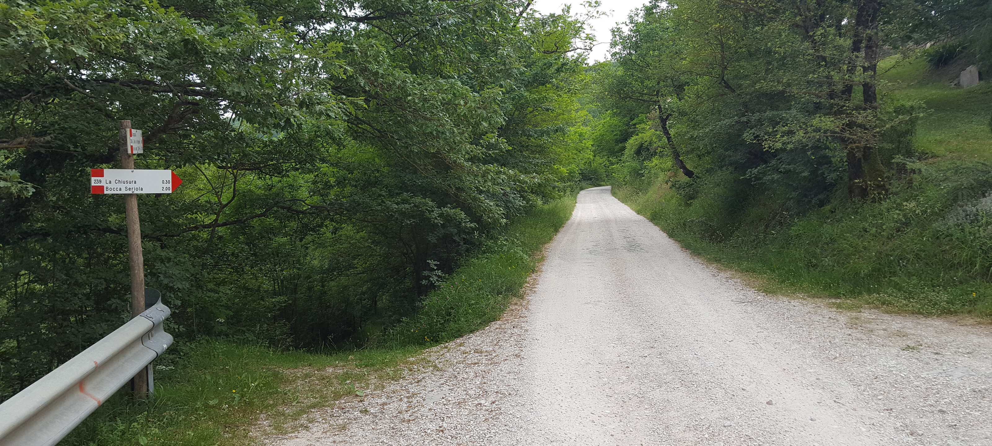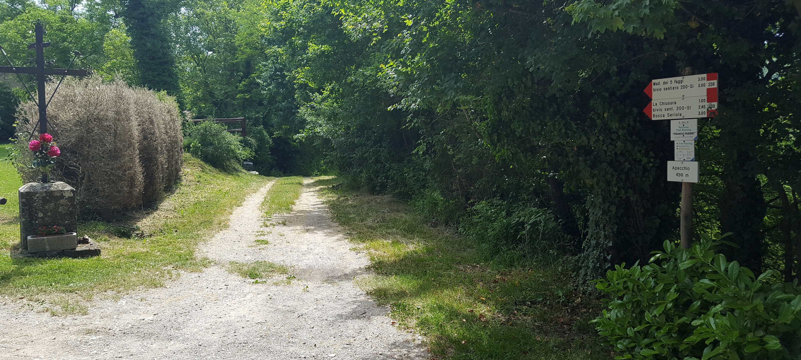 Al termine della risalita si sbuca nell’ampia strada bianca di crinale, che in questo tratto coincide con il Sentiero Italia; seguendo la strada verso destra si giunge in circa mezz’ora di cammino a Bocca Serriola.