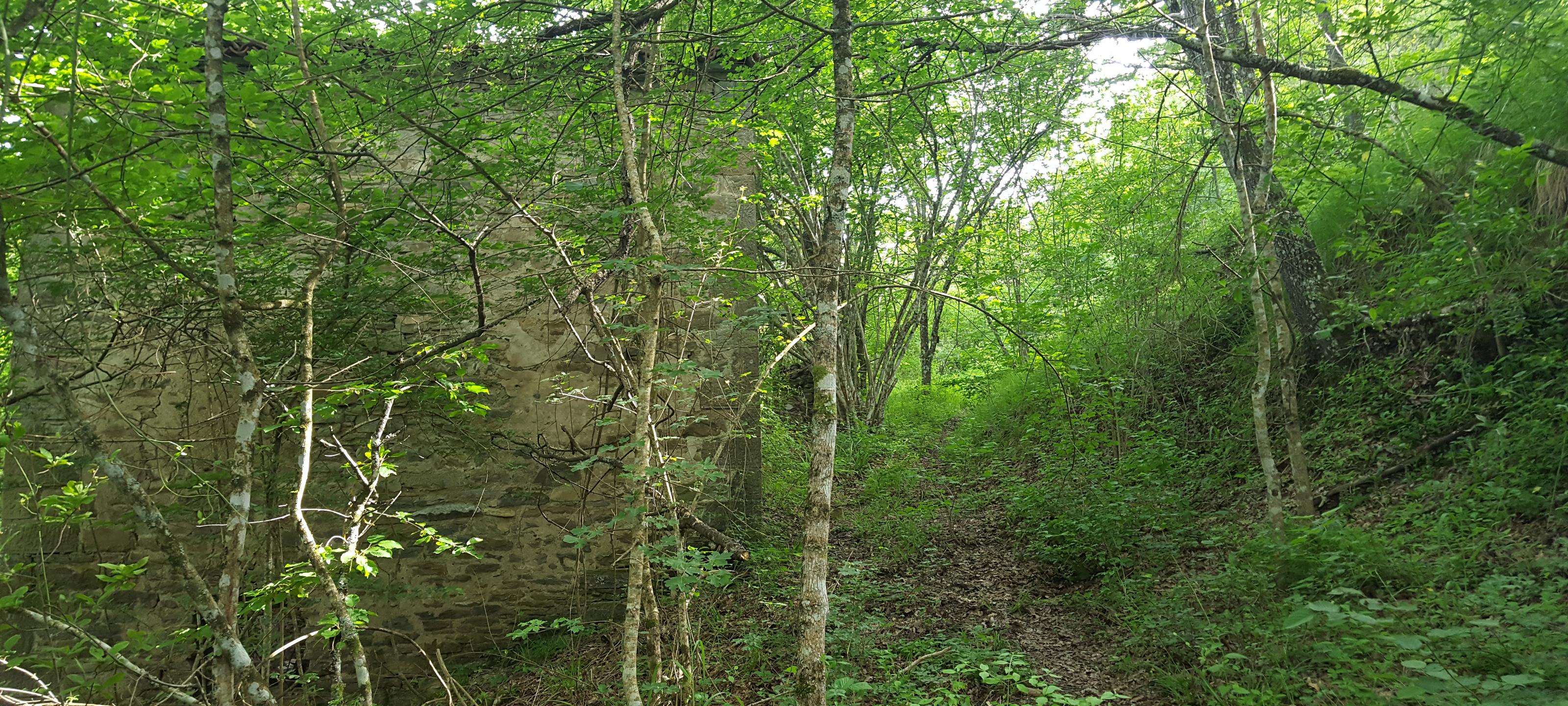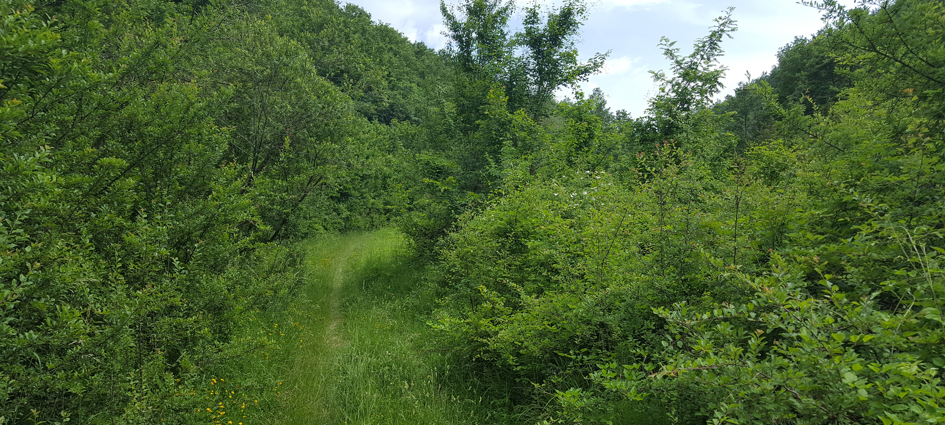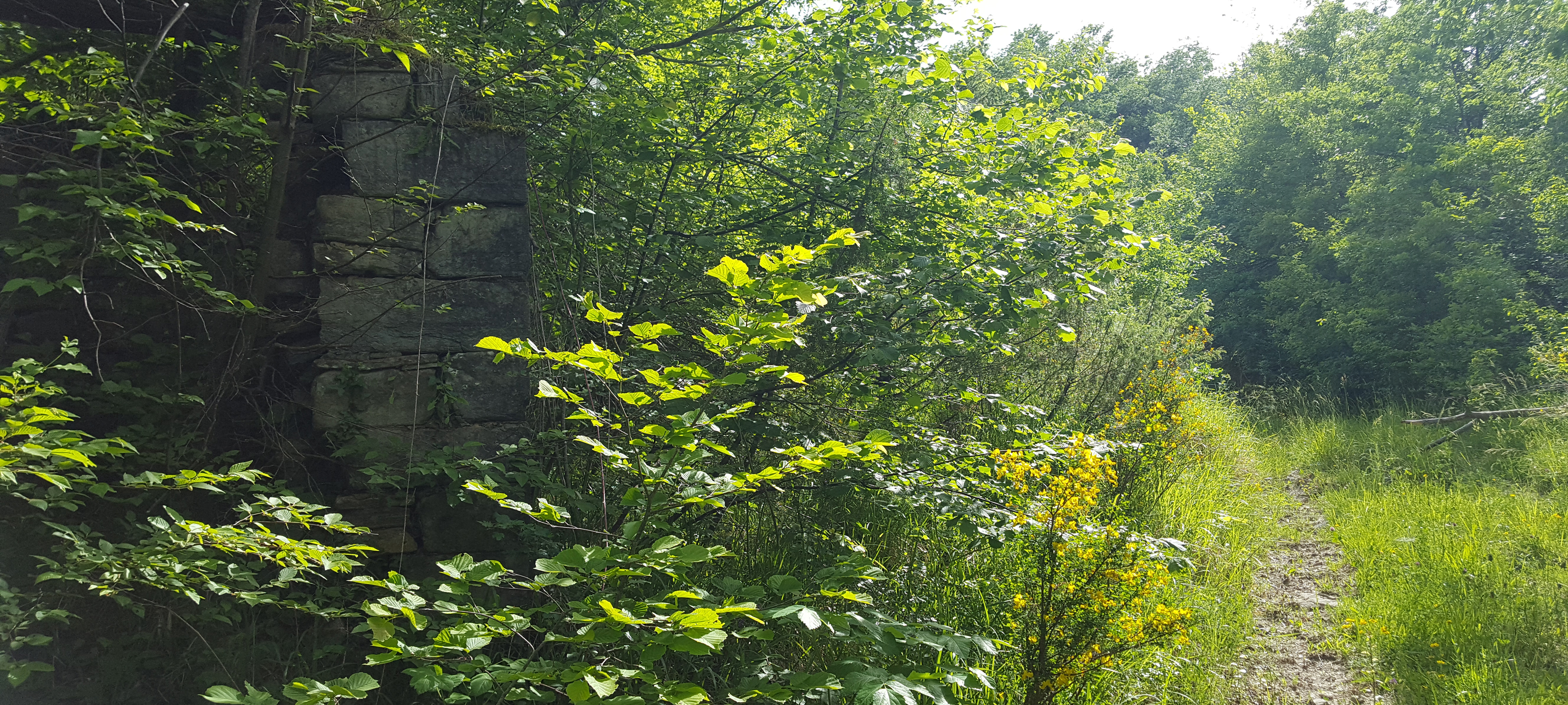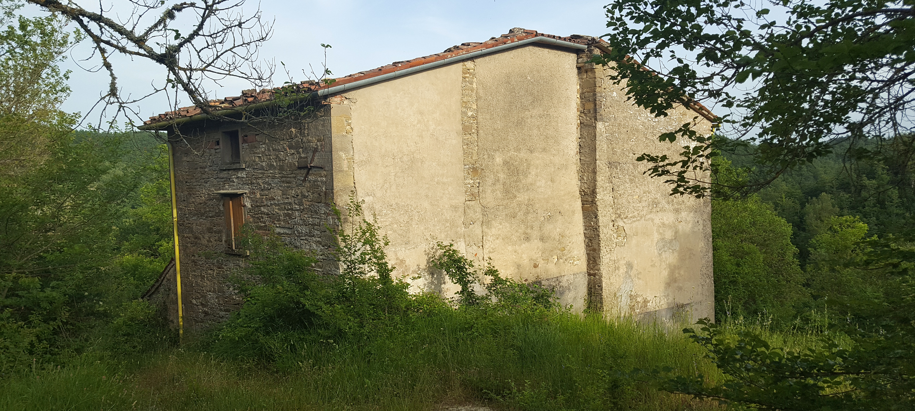Un secondo rudere di un mulino (sulla carta indicato come Molinello) segna il confine con l’Umbria, lo si supera e si prosegue per altri 20 minuti, uscendo ancora a tratti sui prati e rientrando nel bosco, fino a raggiungere un antica cappella votiva, oramai quasi indistinguibile in quanto completamente ricoperta dalla vegetazione.
