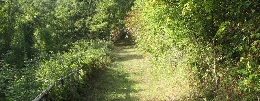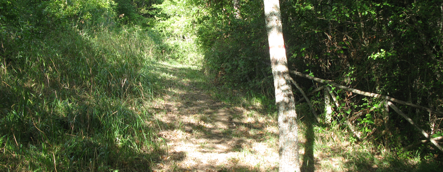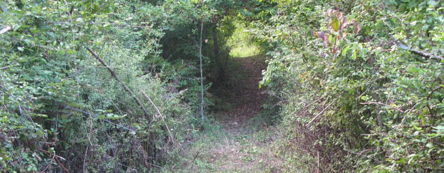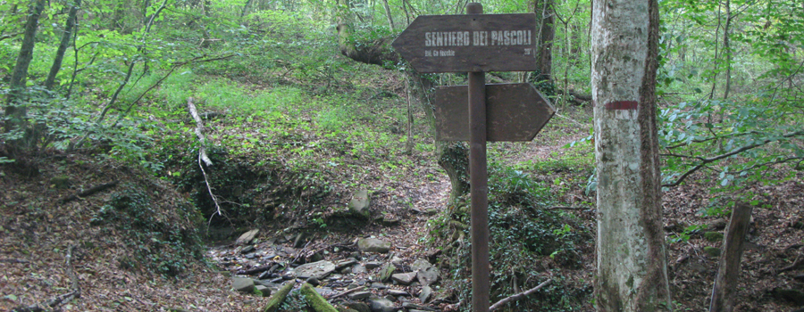 In quest'ultimo incrocio un vecchio cartello indica la via da seguire, con il percorso che si sviluppa al di là del fosso, che andrà attraversato nuovamente mediante un semplice guado.