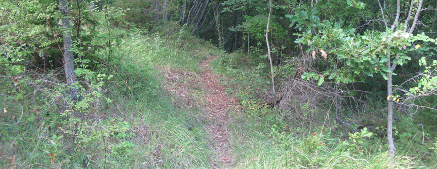 Superato un breve passaggio un po’ più impegnativo, con qualche ramo spezzato ad intralciare il cammino, si prosegue rapidamente circondati dalla vegetazione arbustiva, fino a raggiungere una piccola area di sosta dove sono poste alcune panchine ed un pannello che illustra le caratteristiche del sentiero, da cui con un piccolo tratto di salita si raggiunge la zona degli ampi pascoli.