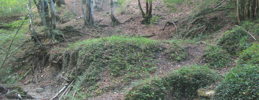 La prima parte del percorso è in falsopiano, e permette di raggiungere in pochi minuti il letto del Fosso dei Cerreti, principale corso d’acqua che attraversa l’area protetta, che va oltrepassato mediante un facile guado, seguito da una breve ma ripida risalita (attenzione a massi e rami secchi disseminati lungo il tratto) che conduce alla piccola spianata di Pian Dingola.