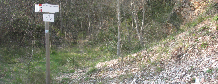 L'individuazione dell'attacco del sentiero, che si trova sulla vecchia Flaminia a circa 1km dal Passo del Furlo, è molto semplice, dal momento che esso è contrassegnato da una tabella, recentemente sistemata, con l'indicazione della località ed i tempi di percorrenza.