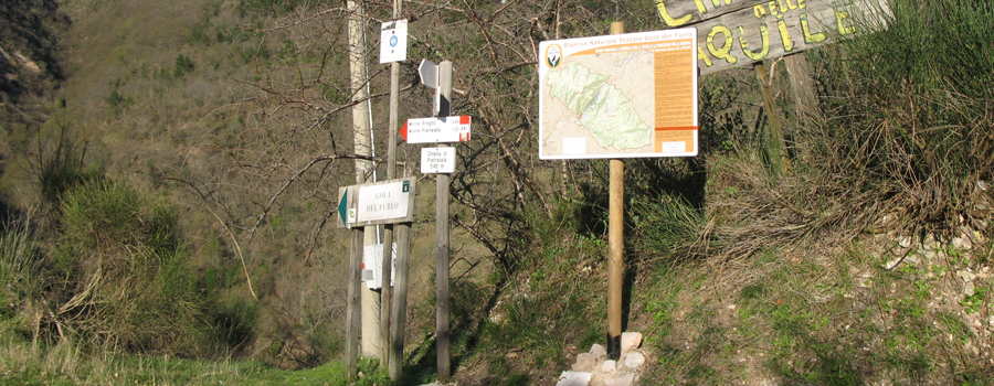 Il sentiero 441 della Riserva Naturale Statale Gola del Furloinizia nel piazzale antistante il Santuario del Pelingo, comodo punto di partenza dotato di ampi spazi dove è possibile parcheggiare le vetture.