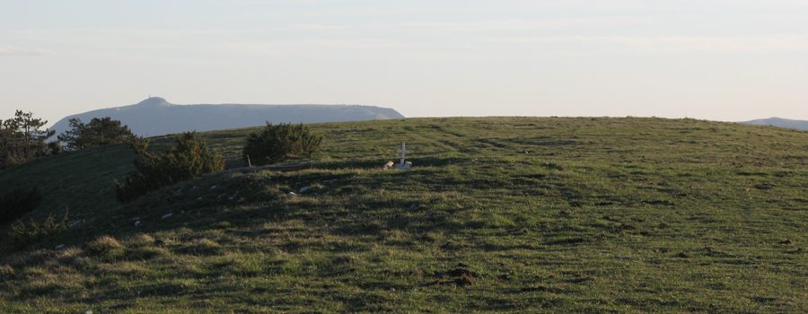 Il lungo falsopiano ha termine nel punto in cui si incrocia, da sinistra, il sentiero 441B che funge da raccordo con il sottostante tracciato del sentiero 440. Qui si svolta a destra, ai margini del prato, su una traccia ben segnalata che conduce in poco tempo alla vetta del Pietralata, contrassegnata da una piccola croce e circondata dall’ampio prato che si estende a perdita d’occhio verso ovest. Dalla vetta si può proseguire sul sentiero 446, che scende sull’altro lato diretto al cuore della Gola del Furlo.
