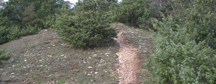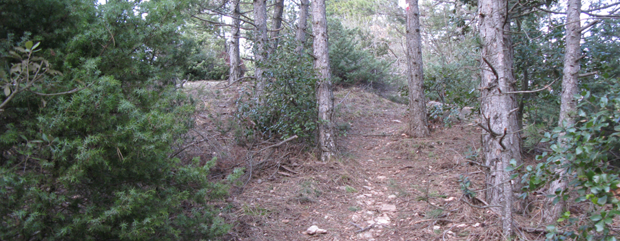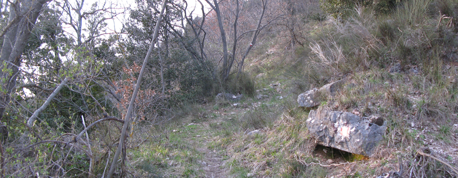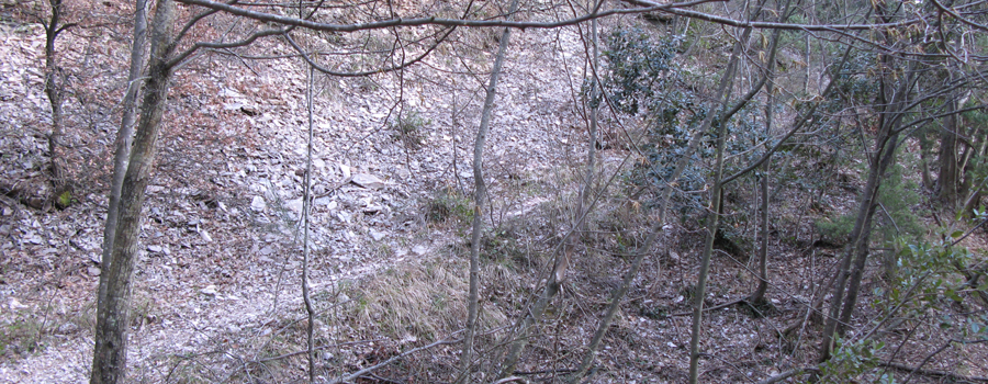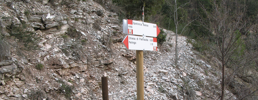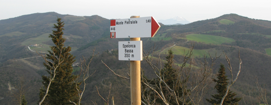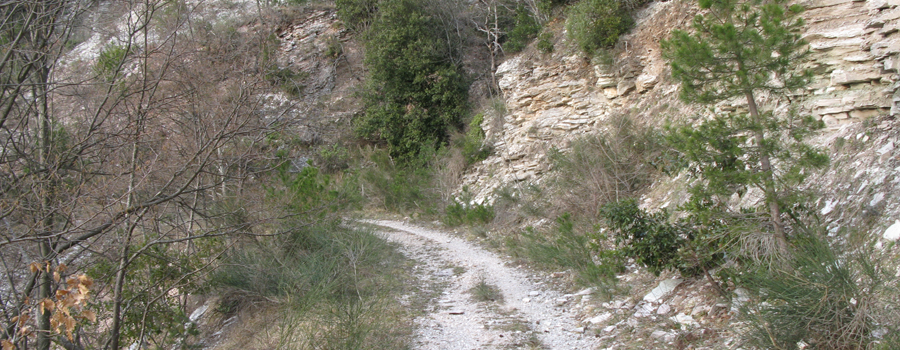 Dopo alcuni chilometri il paesaggio inizia a cambiare aspetto e la strada si immerge nelle piacevoli ombre ristoratrici fornite dal bosco che ricopre il versante ovest del Pietralata, fino a raggiungere un incrocio (con il sentiero 441A), ben segnalato sulla destra, dove si abbandona la sterrata per proseguire sul tracciato dell’ex sentiero 150, abbandonando le dolci pendenze per intraprendere un tratto più impegnativo.
