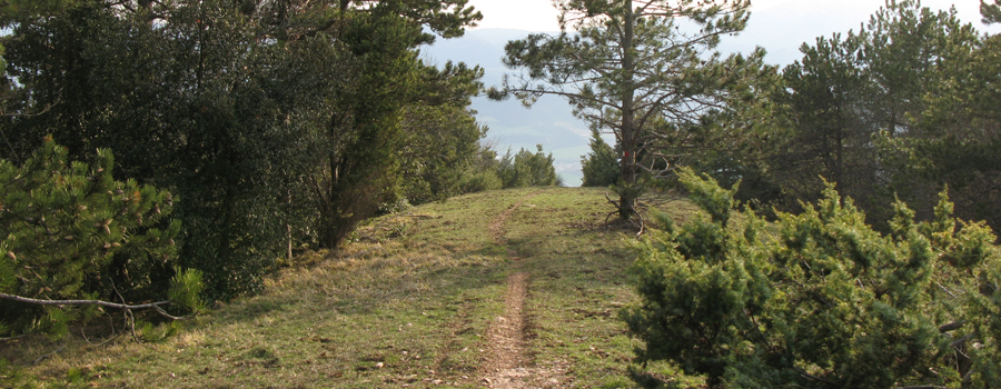 In questo tratto il bosco si dirada progressivamente, passando da alti fusti ad arbusti più bassi, fino ad aprirsi sugli ampi prati sommitali che caratterizzano l’ultima parte del percorso ed in breve tempo si raggiunge la panoramica vetta, posta a quota 889 metri, alla quale, dall'altro lato, giunge anche il sentiero 441.
