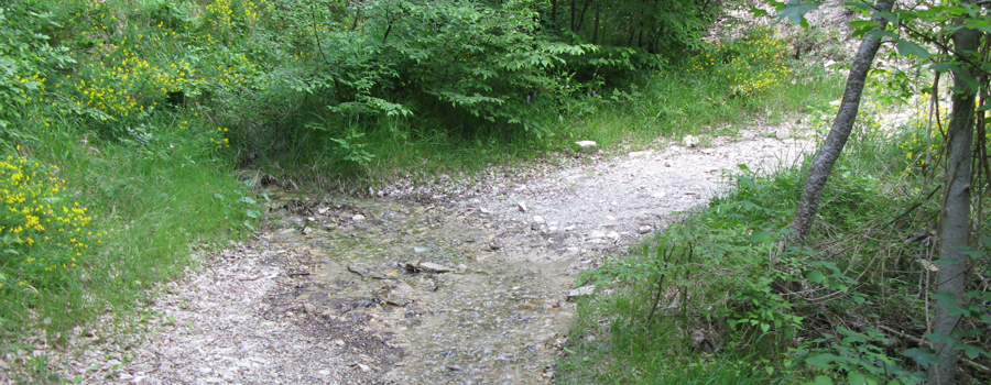 All'ingresso del bosco la traccia si fa molto più ampia, mentre si attraversano anche alcuni piccoli guadi, veramente molto semplici, di alcuni fossetti che scorrono lungo questo versante.