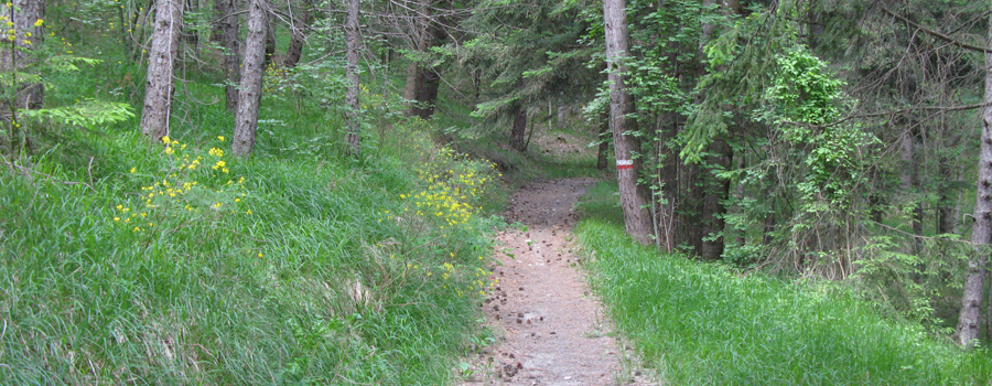 La salita presenta in questo tratto pendenze molto contenute e la segnatura è ben fatta e presente praticamente ad ogni incrocio, cosa oltremodo utile in quanto vi sono diverse strade forestali che si intersecano all'ombra di questo bosco e sarebbe un problema trovare il giusto percorso se non fossero presenti i segni...