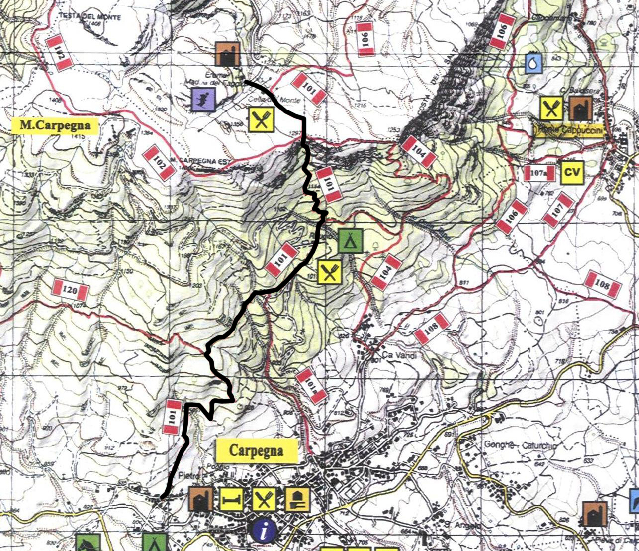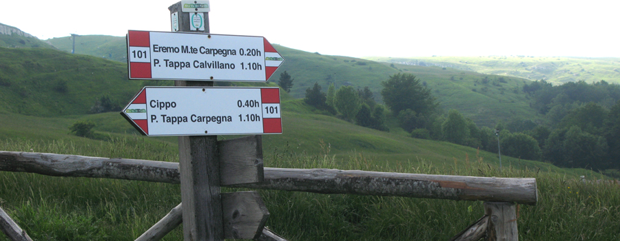 Il sentiero 101 del comprensorio del Monte Carpegna collega il paese di Carpegna con l'Eremo di Monte Carpegna, attraversando l'ampia zona boscata che caratterizza il versante sud della montagna ed il panoramico Passo del Trabocchino.
