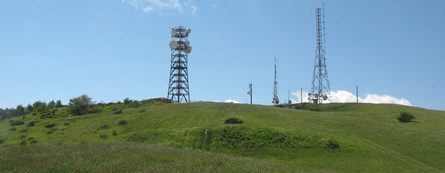 Superato il bel punto panoramico si sale sui prati, raggiungendo in breve tempo la vetta del Monte Palazzolo, sormontata dalle vistose antenne dei ripetitori RAI, ed iniziando quindi a scendere sul versante opposto, su di una ampia cresta con bella vista sul dirimpettaio Monte Carpegna.