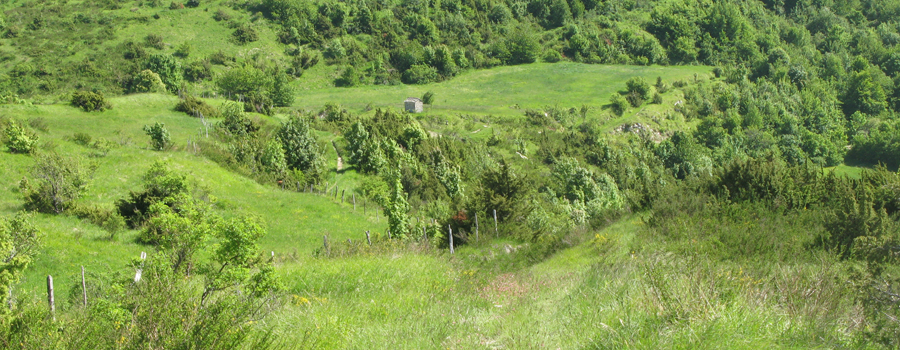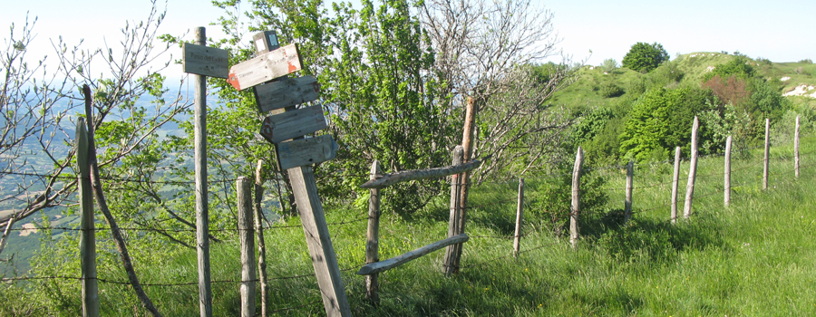 Si inizia a salire attraversando un grande campo, con la segnaletica che in questo primo tratto lascia abbastanza a desiderare, e la traccia è quasi invisibile… per evitare di perdere l’orientamento occorre fare attenzione a degli sbiaditi segni su di una recinzione, che va seguita nonostante la fitta vegetazione che rende problematico l’incedere.