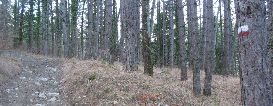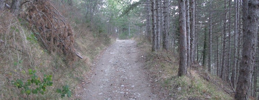 Durante la salita, che si svolge all’interno di un bel bosco costituito da alberi ad alto fusto, si affronta anche un guado su uno dei torrentelli che vanno ad alimentare il bacino del fiume Conca, e occorre fare attenzione al fango che caratterizza questa zona soprattutto nelle stagioni umide.