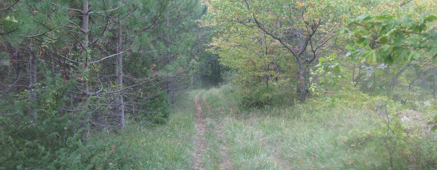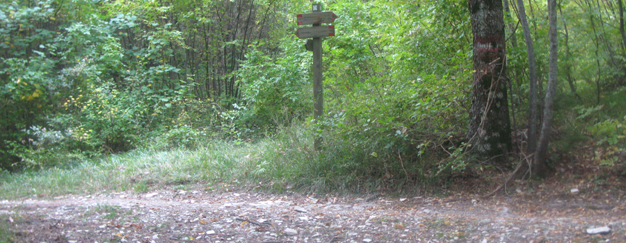 Oltrepassato il prato si entra nel fitto bosco che ricopre questo versante del Carpegna, giungendo in brevissimo tempo all’incrocio con il sentiero 106, dove il percorso termina.