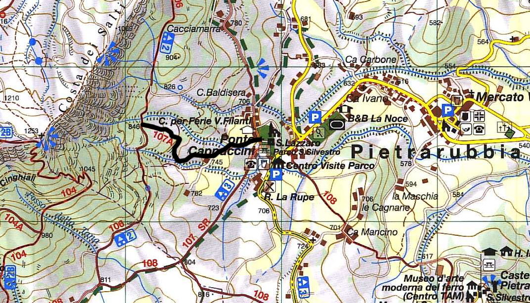 Il sentiero 107A del Monte Carpegna è un breve raccordo che collega i sentieri 107 e 106, permettendo di raggiungere quest’ultimo percorso partendo direttamente dalla frazione di Ponte Cappuccini.