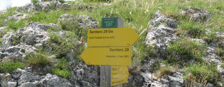 Il sentiero 29 (la segnaletica è del Parco del Monte Cucco, al quale amministrativamente questo itinerario appartiene, trovandosi completamente in territorio umbro, ma geograficamente si tratta di un percorso posto all’interno del massiccio del Monte Catria) è sicuramente il più impegnativo itinerario di tutto il comprensorio, ma la fatica profusa è sicuramente ben ripagata in quanto permette di scoprire un ambiente selvaggio ed affascinante, fatto di millenarie rocce calcaree scavate e modellate dalla forza erosiva della natura.