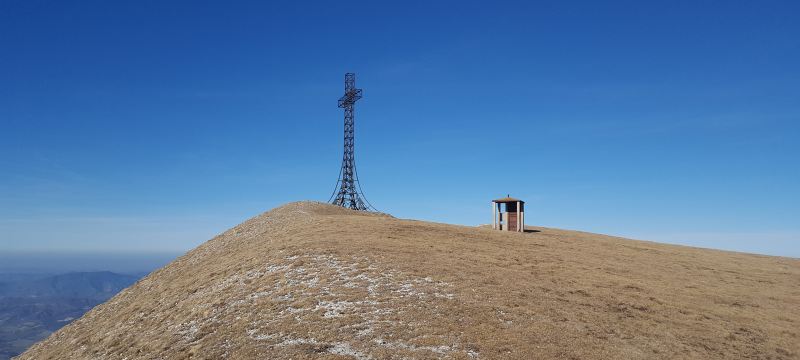 Superata la strada non resta che percorrere l’ultimo tratto di cresta, con la grande croce sulla vetta ad indicare chiaramente la via, fino a raggiungere in breve tempo la stessa (dove transita anche il sentiero 56 che proviene dal Rifugio Vernosa) e godere della sconfinata vista offerta da questo luogo.