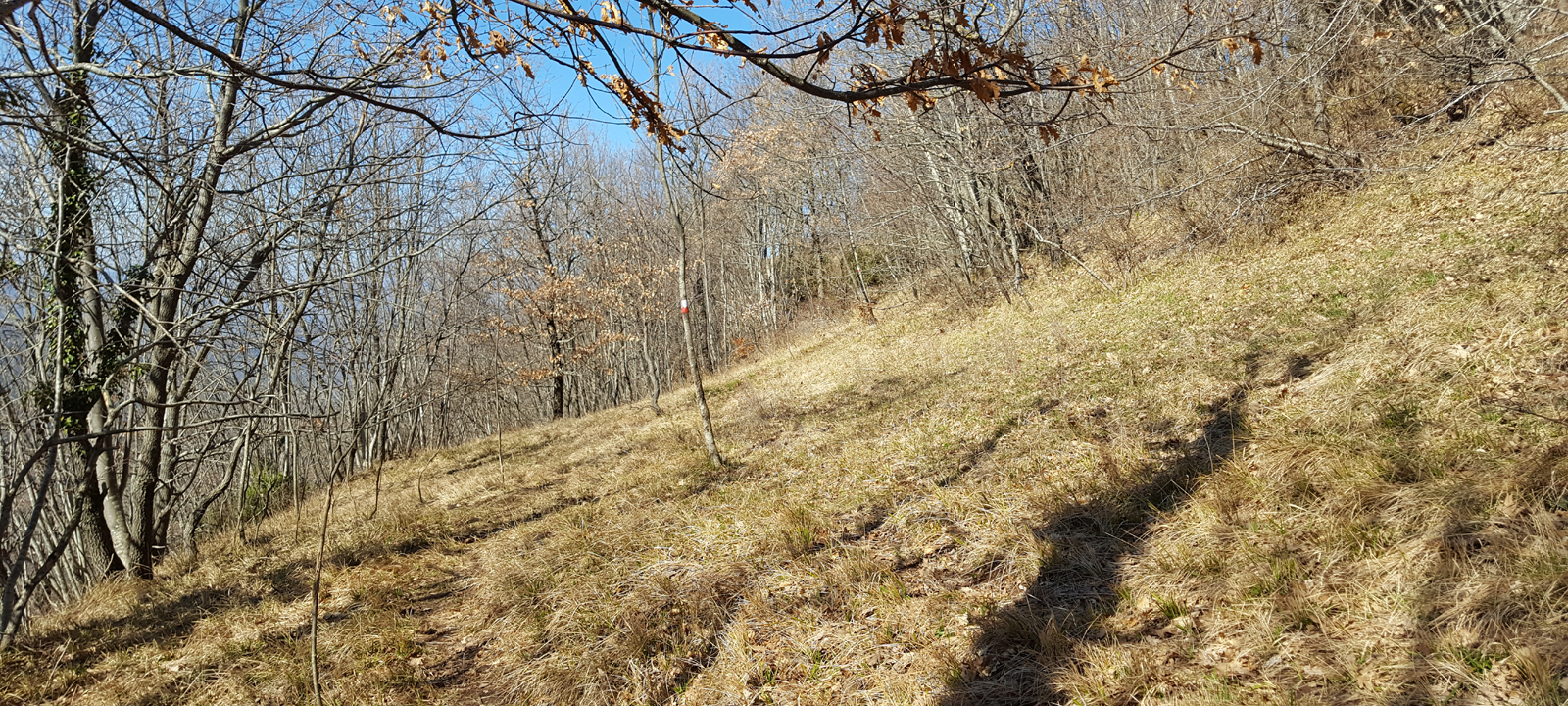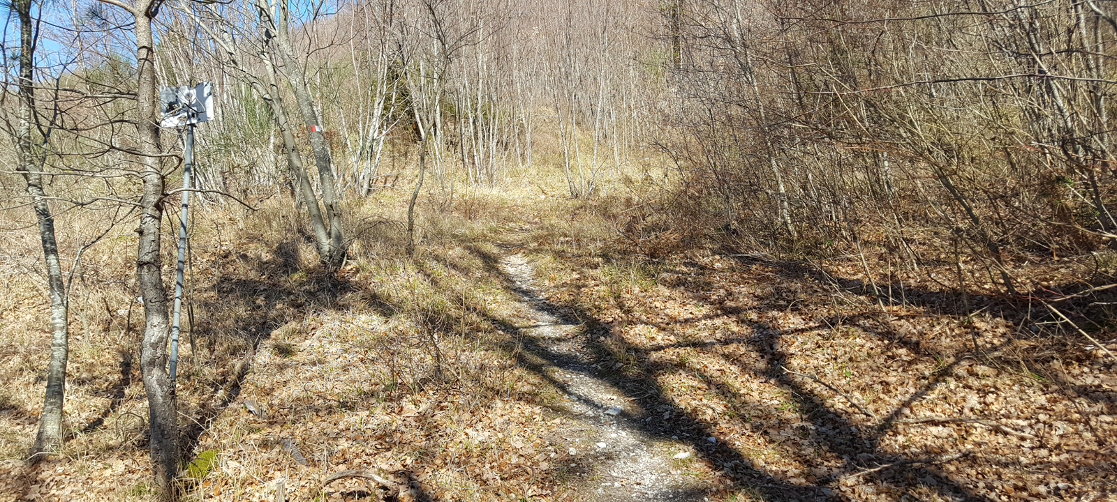 La segnatura recentemente risistemata permette di individuare la via corretta, che entra nuovamente in un breve tratto all’ombra degli alberi per poi terminare incrociando l’ampia traccia del sentiero 54, che sale da Malecchie verso la vetta.