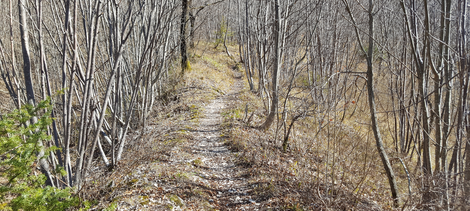 Il punto di partenza è appunto il passo, da dove si deve individuare una traccia che si inoltra nel bosco lato Catria, proprio nel punto in cui la strada asfaltata incrocia la sterrata, iniziando dopo pochi metri a salire in maniera decisa all’ombra della vegetazione.