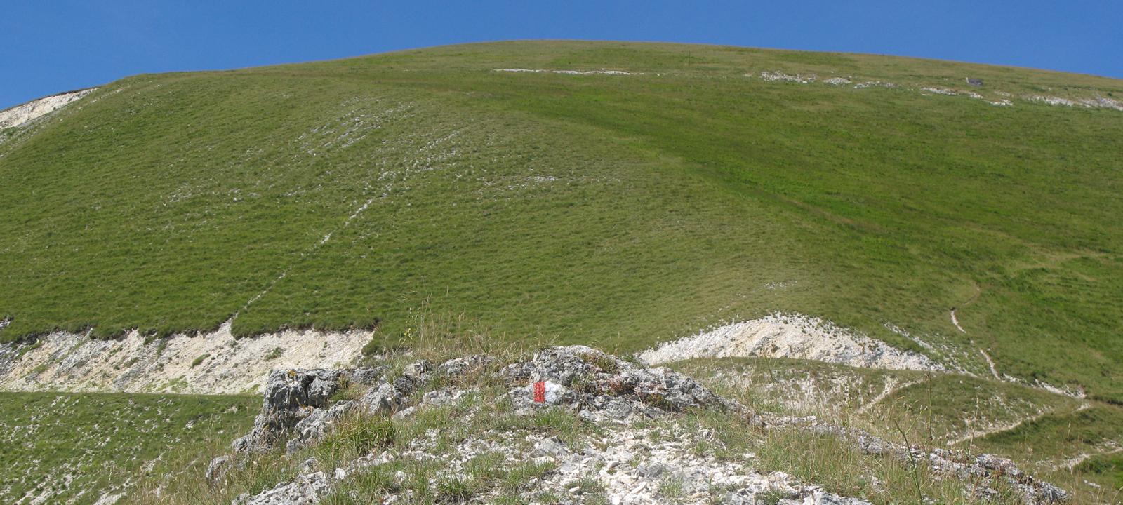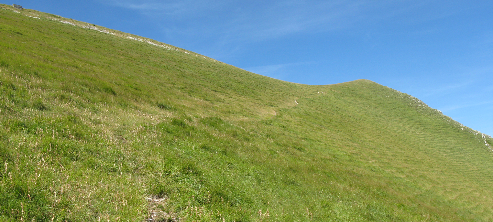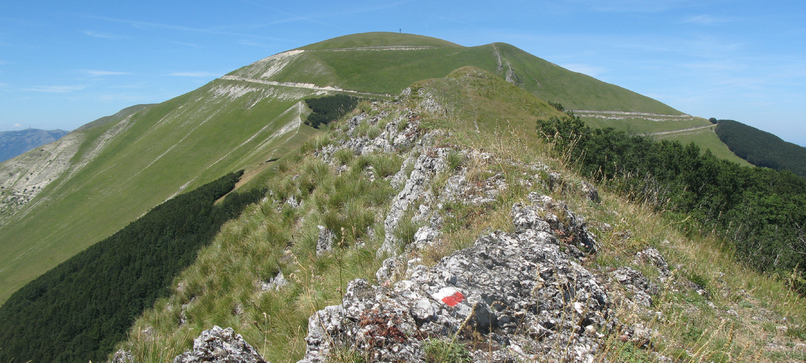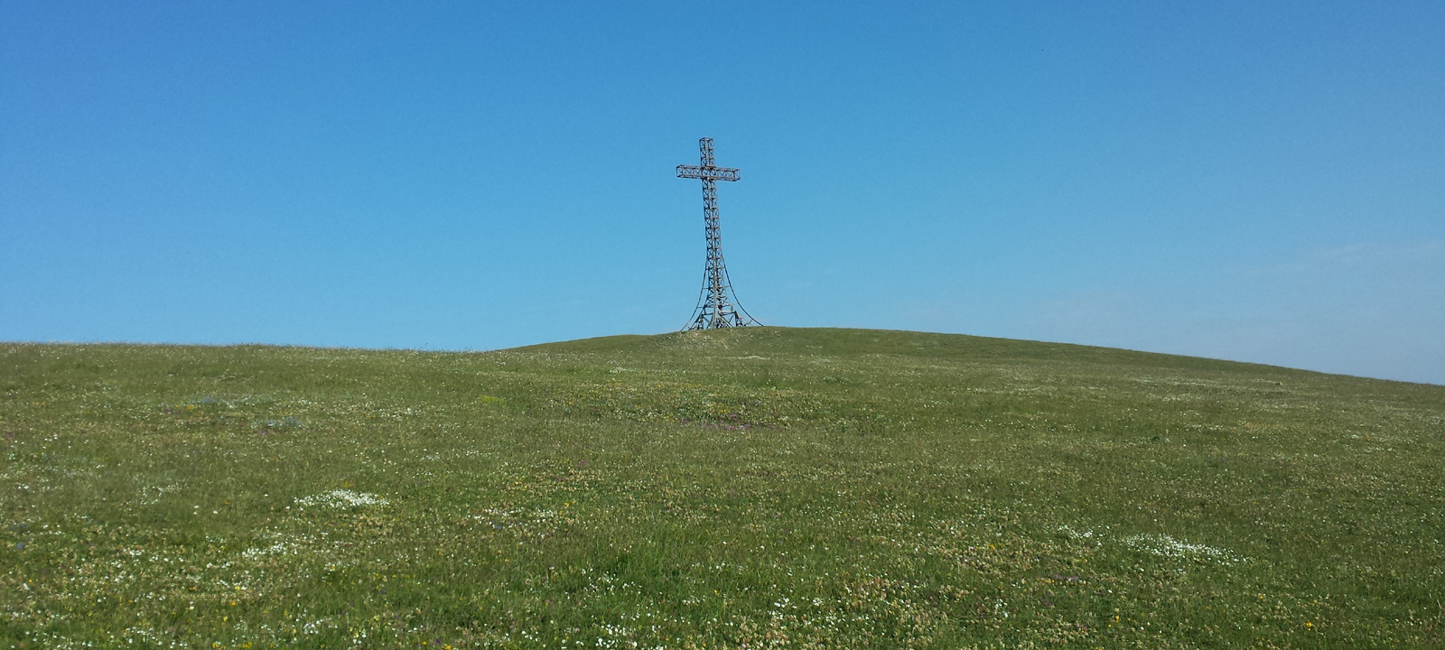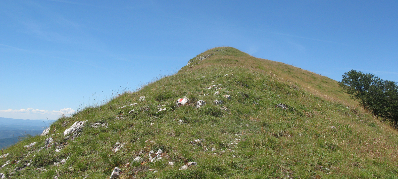 Subito oltre la strada il sentiero inizia la salita finale, di pendenza più marcata rispetto all'ultimo tratto percorso, che conduce comunque in breve tempo in vetta (m. 1701), all'ombra della grande croce, dove una sosta è d'obbligo per godersi il fantastico panorama a 360°.