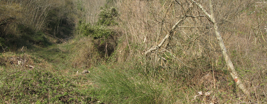 Dopo la manutenzione la traccia è divenuta più semplice da seguire, anche se la vegetazione di sottobosco tende comunque già ad invadere il percorso… è necessaria quindi una certa cautela nell'affrontare questo tratto, caratterizzato anche da un paio di guadi necessari ad attraversare il ruscello che scorre nella valle.