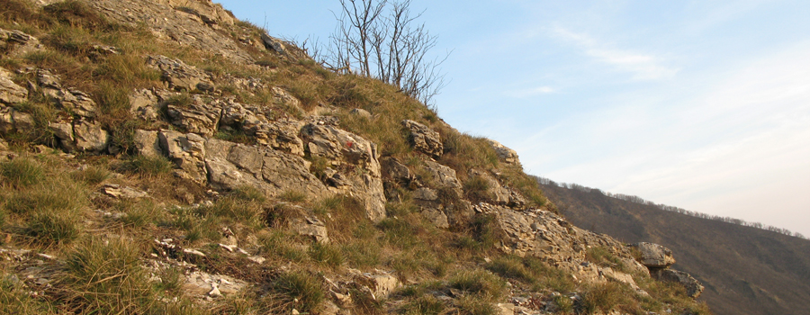 Purtroppo in quest’ultimo tratto la segnatura viene a mancare quasi completamente (solo alcuni segni sporadici su alcune rocce) e non è facile individuare la via corretta, rendendo necessaria una risalita sulla lunga cresta rocciosa, che presenta però pendenze molto marcate…