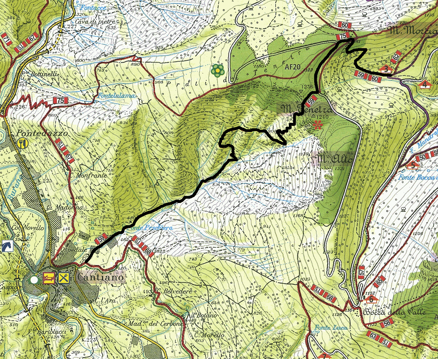 Il sentiero 59 è un percorso piuttosto impegnativo che conduce, partendo da Cantiano, al rifugio Valpiana, attraversando il caratteristico “imbuto” del monte Tenetra che sovrasta l’abitato.
