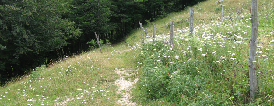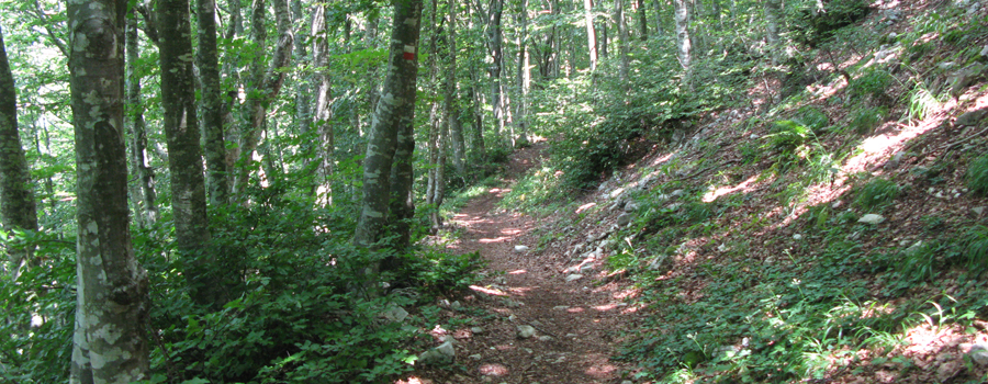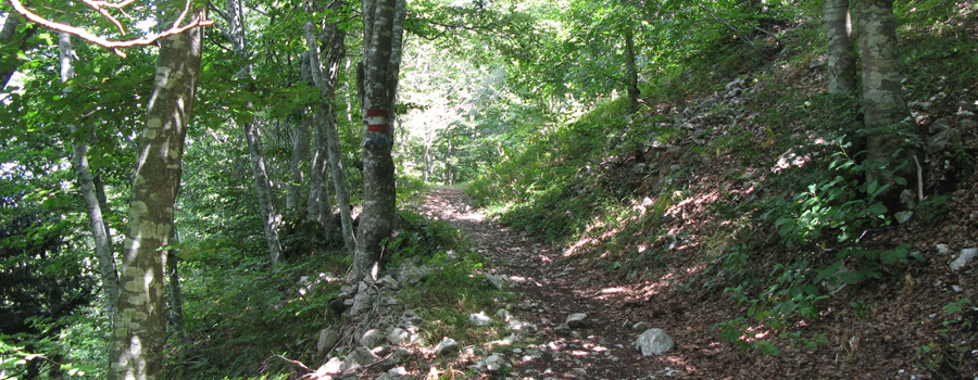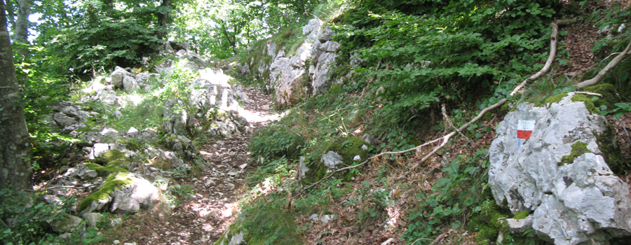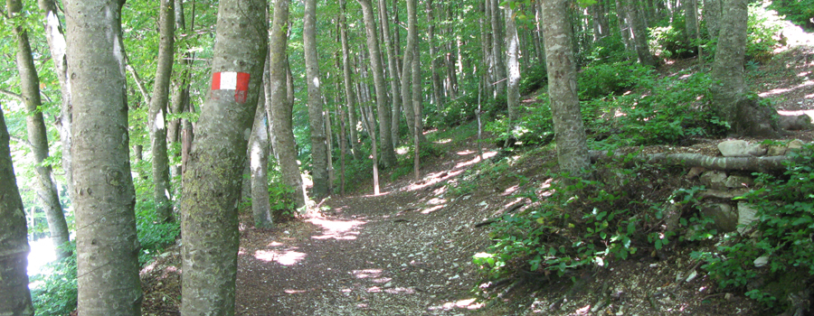La via è facilissima da individuare partendo dalla Casetta Mochi e dirigendosi verso nord-est, alcuni segni sugli alberi non lasciano dubbi di sorta e sono persino in numero quasi eccessivo, se rapportati alla scarsa segnaletica che contraddistingue altri vicini itinerari ben più ardui da individuare.