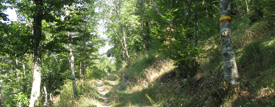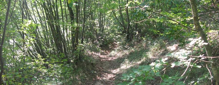 Questa parte del tracciato è più comoda della precedente, la salita si fa meno dura e l'ambiente, caratterizzato da un bel bosco composto da alberi a basso fusto, è molto fresco e piacevole.