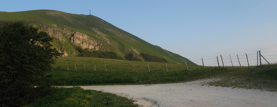 Si esce quindi quasi improvvisamente dal bosco, ritrovandosi sui prati della Vernosa, con la vetta del Catria imponente sulla sinistra, mentre la sella dell'Infilatoio e, più lontana, la sagoma del Monte Acuto si trovano sulla destra. Qui la salita ha termine, ed il percorso si conclude con una rapida discesa sui prati fino a raggiungere l'Infilatoio (1376m). Disponendo di tempo è possibile imboccare, verso sinistra, il sentiero 55 che sale da Chiaserna al Rifugio Vernosa, fino a raggiungere la grande croce sulla vetta (poco più di 1 ora di cammino, andata e ritorno) dalla quale si può ammirare un panorama fantastico su tutto l'Appennino centrale.