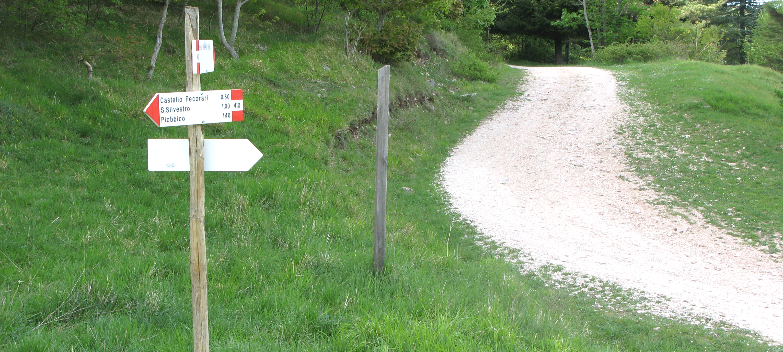Percorse alcune centinaia di metri, si sbuca in una radura posta proprio ai piedi di un caratteristico rilievo, sopra il quale non si può non notare la sagoma dell'antico Castello dei Pecorari, del quale sono giunti ai giorni nostri soltanto alcuni ruderi (è possibile salire in breve sulla sommità ed osservare da vicino la costruzione, mediante il sentiero 11 che si incrocia proprio in questo punto).