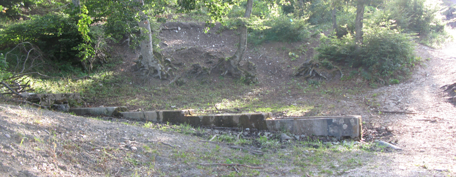 Da qui si segue la strada, che sale con numerose e piacevoli svolte lungo il fianco del Monte Cimaio, offrendo spettacolari viste delle sue strapiombanti pareti, fino a raggiungere un punto in cui lo sterrato si tramuta in sentiero e, alcune centinaia di metri dopo, si incontra sulla sinistra la Fonte dell’Acqua Ghiacciata, preziosa risorsa che giunge graditissima dopo un lungo tratto senza possibilità di dissetarsi.