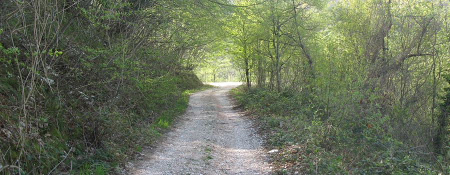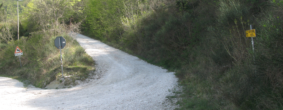 La partenza, come detto, è posta a Fosto, piccolo agglomerato di case che si trova sulla provinciale n.82 che collega Piobbico con Secchiano, da dove si imbocca un'ampia strada bianca che si inoltra in lieve salita nel bosco. Superata l'indicazione per l'agriturismo Fosto (girare a destra, l'agriturismo si trova invece sulla sinistra) si prosegue sulla comoda sbrecciata per un lungo tratto (circa 1,5km) caratterizzato da pendenze dolci e costanti, con la vegetazione che spesso si apre lasciando apprezzare le belle vedute sulle verdi pendici boscose di questo versante del Monte Nerone.