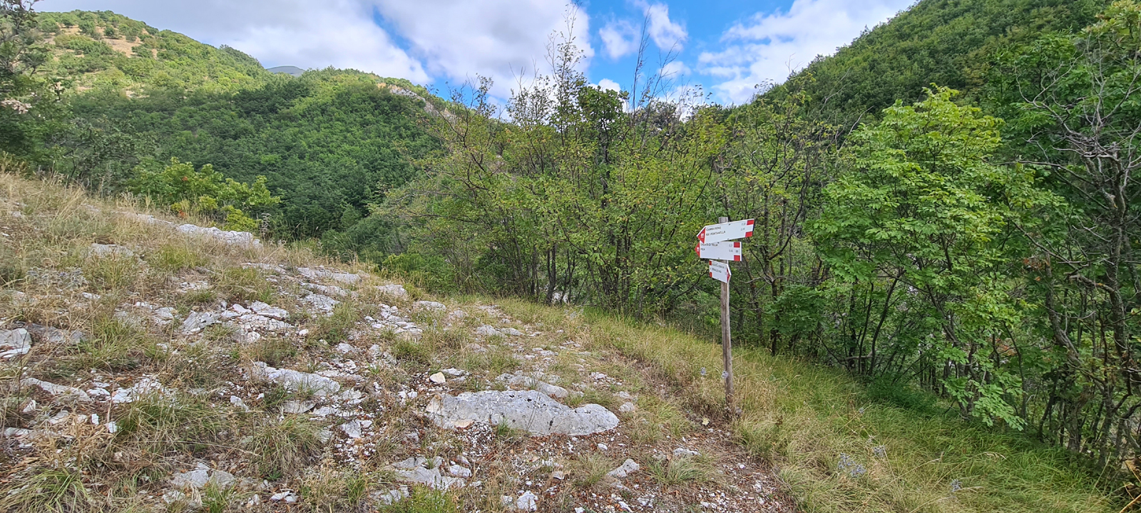 Da questo punto si dipartono diversi altri sentieri, il 20 che conduce a Cerreto passando per l’arco di Fondarca, il Sentiero Italia che conduce in vetta ed il selvaggio sentiero 21 che sale alla volta dei prati della Montagnola.