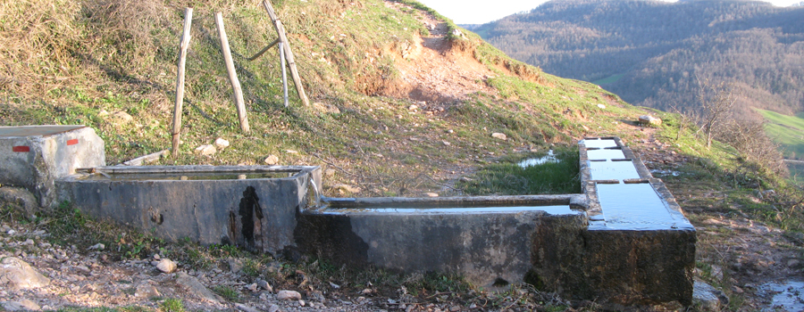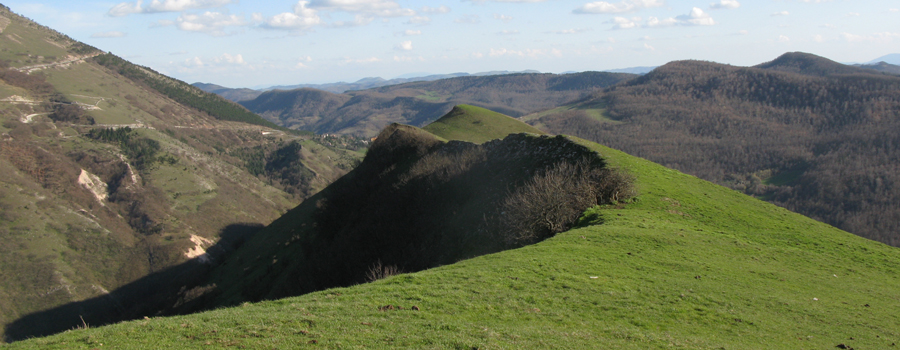 Superato il tratto boschivo si esce su di un bel prato con vista panoramica della valle sottostante e si incontra una preziosa fonte (poca acqua in estate, abbondante invece nelle stagioni intermedie) presso cui effettuare una piacevole sosta prima dell'ultimo tratto in salita, che consente di raggiungere una sella naturale che attraversa la spettacolare cresta del Cardamagna poco sotto la vetta (che non viene toccata dal sentiero ma che è facilmente raggiungibile in una decina di minuti seguendo la cresta stessa).