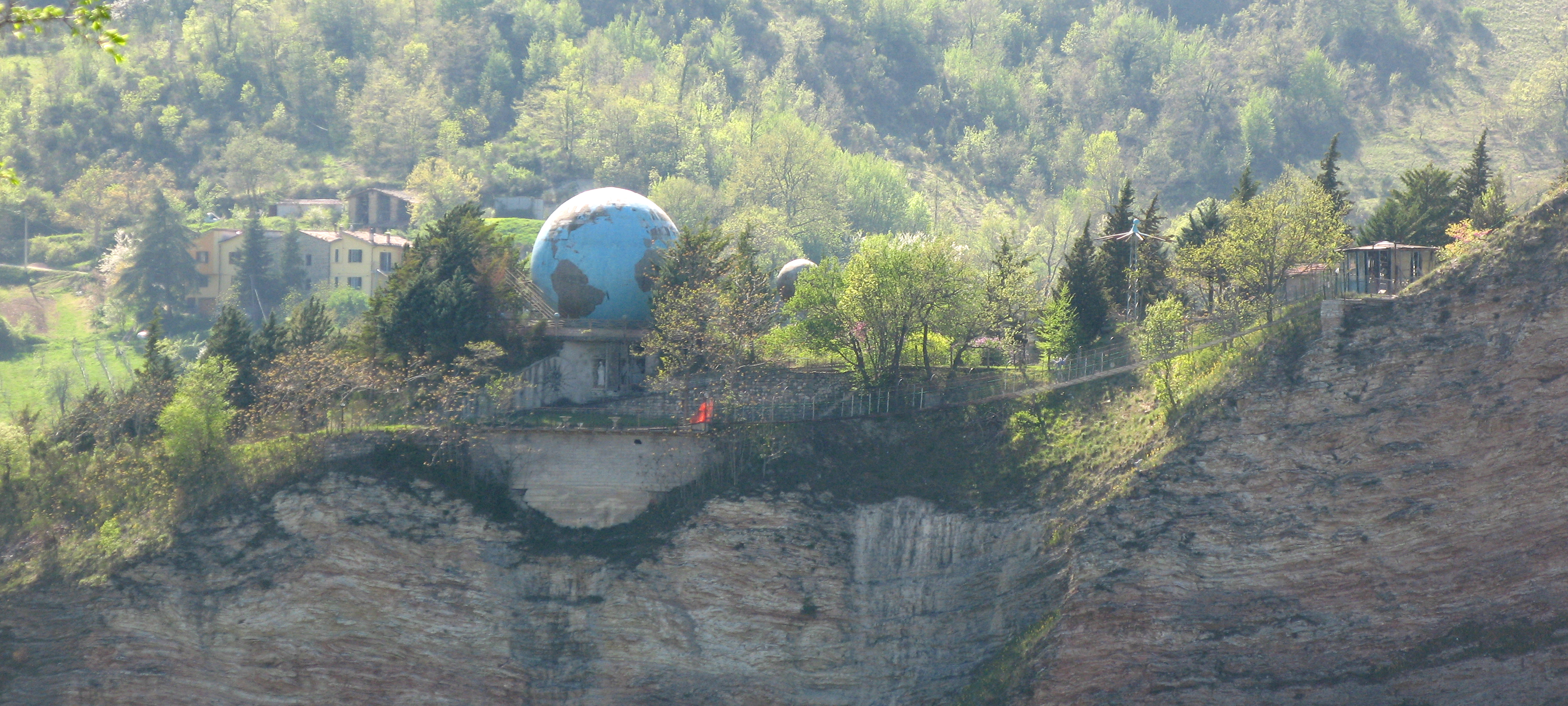 In breve tempo si giunge sul crinale, e si inizia a seguire una spettacolare cresta, che si dirige verso la vetta salendo con pendenze costanti; da questo punto si può iniziare ad apprezzare il panorama sulle valli sottostanti, con sulla destra ben visibile, al di là del Fosso della Carda, l’abitato di Colombara con il caratteristico “Mappamondo della Pace”, enorme planisfero dal diametro di 10 metri, realizzato nel 1988 da Orfeo Bartolucci ed inserito, all’epoca, nel Guinness dei Primati per le proprie notevoli dimensioni.