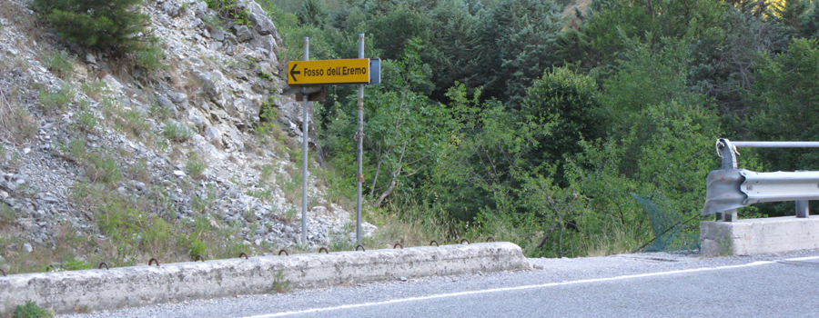 Il sentiero n.8 del comprensorio di Monte Nerone parte dalla strada provinciale apecchiese al km 39.200, di fronte ad un ampio parcheggio dove lasciare l'auto. L'attacco è segnalato da un evidente tabella riportante la scritta "Fosso dell'Eremo".