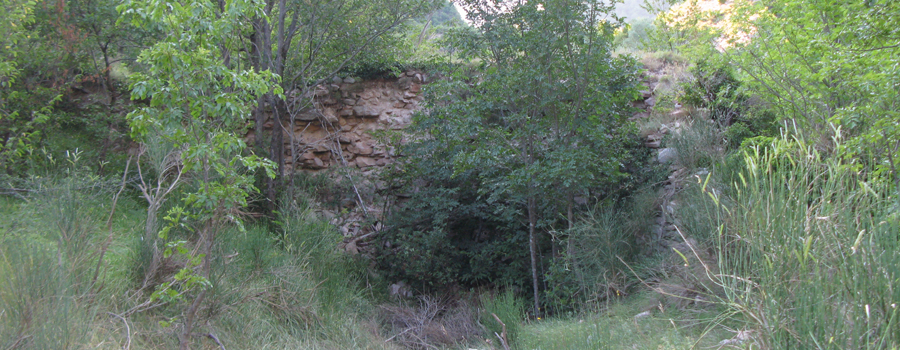Il sentiero prosegue lasciandosi le pareti sulla destra, e presenta, dopo poco, un bivio dove occorrerà svoltare a sinistra (attenzione perchè anche la traccia a destra è ben evidente e può ingannare) incontrando un breve tratto di salita che porta ai ruderi del vecchio Eremo di Santa Maria in Morimondo, superato il quale (breve discesa) si procede costeggiando il torrente, incrociandolo in una serie di guadi (bisogna affrontarne ben 15 in totale, genericamente sono semplici, bisogna solo far attenzione alla portata del fosso che in primavera potrebbe obbligare a bagnarsi).