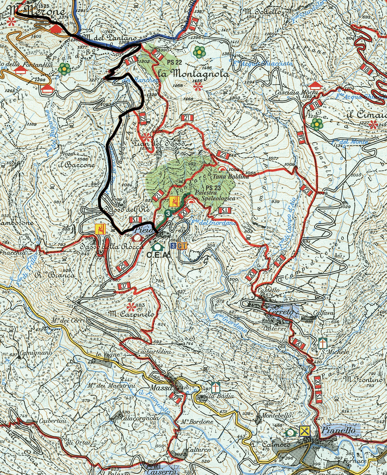 Il tratto di Sentiero Italia che va da Pieia alla vetta del Monte Nerone è il naturale proseguimento del sentiero 20 che sale da Pianello, ed è l’unico della zona non contrassegnato sulla carta da un numero, ma è comunque ben segnalato sul posto e quindi facilmente individuabile.