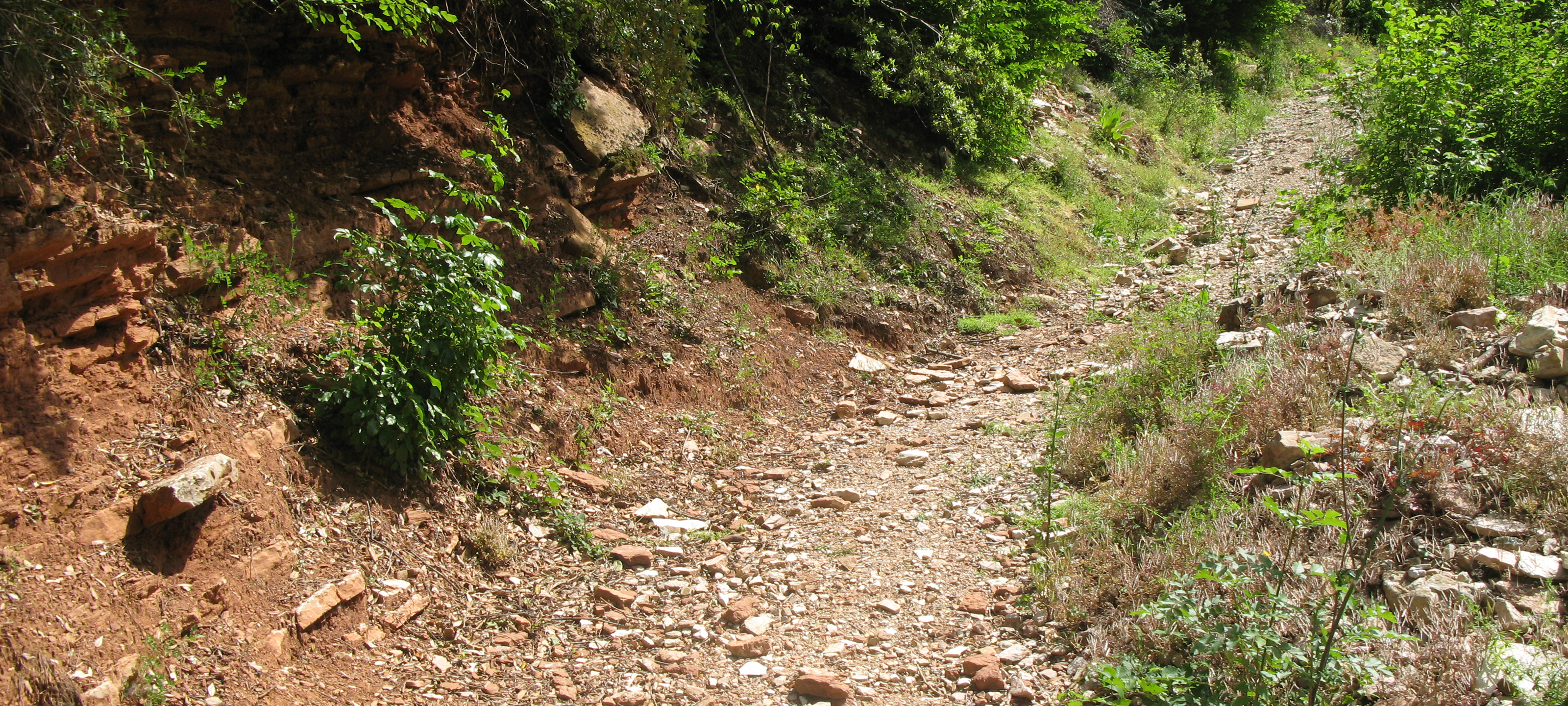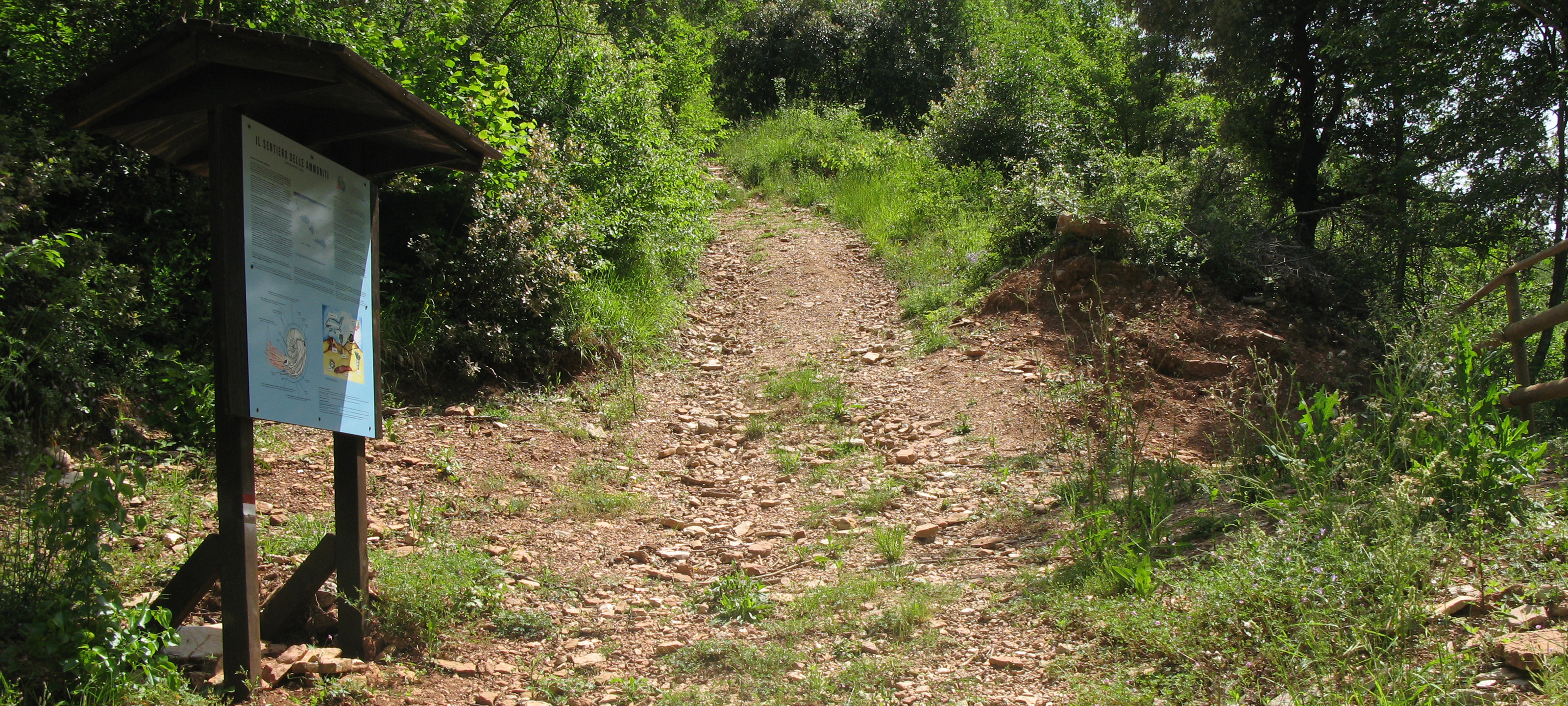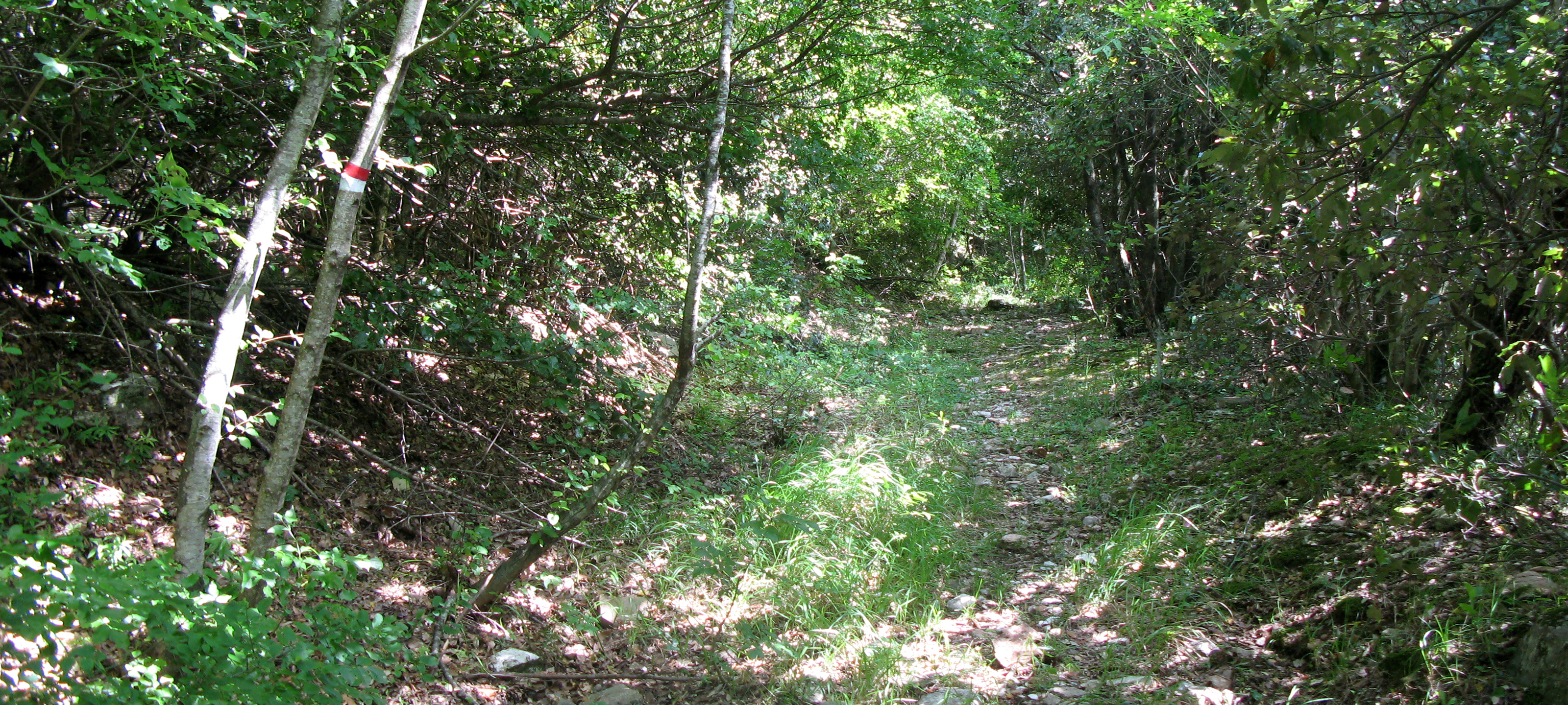 Si tratta di un sentiero impegnativo, non tanto per il fondo che non presenta particolari difficoltà, quanto per le pendenze che, almeno nella parte iniziale, sono veramente notevoli. L’attacco del percorso si trova sulla provinciale che conduce da Cagli a Pianello, poche centinaia di metri dopo aver oltrepassato Secchiano, dove un cartello sulla sinistra indica lo stretto accesso alla passerella metallica che permette di superare il fiume Bosso e giungere sull’altro versante, da dove inizia immediatamente la ripida salita.