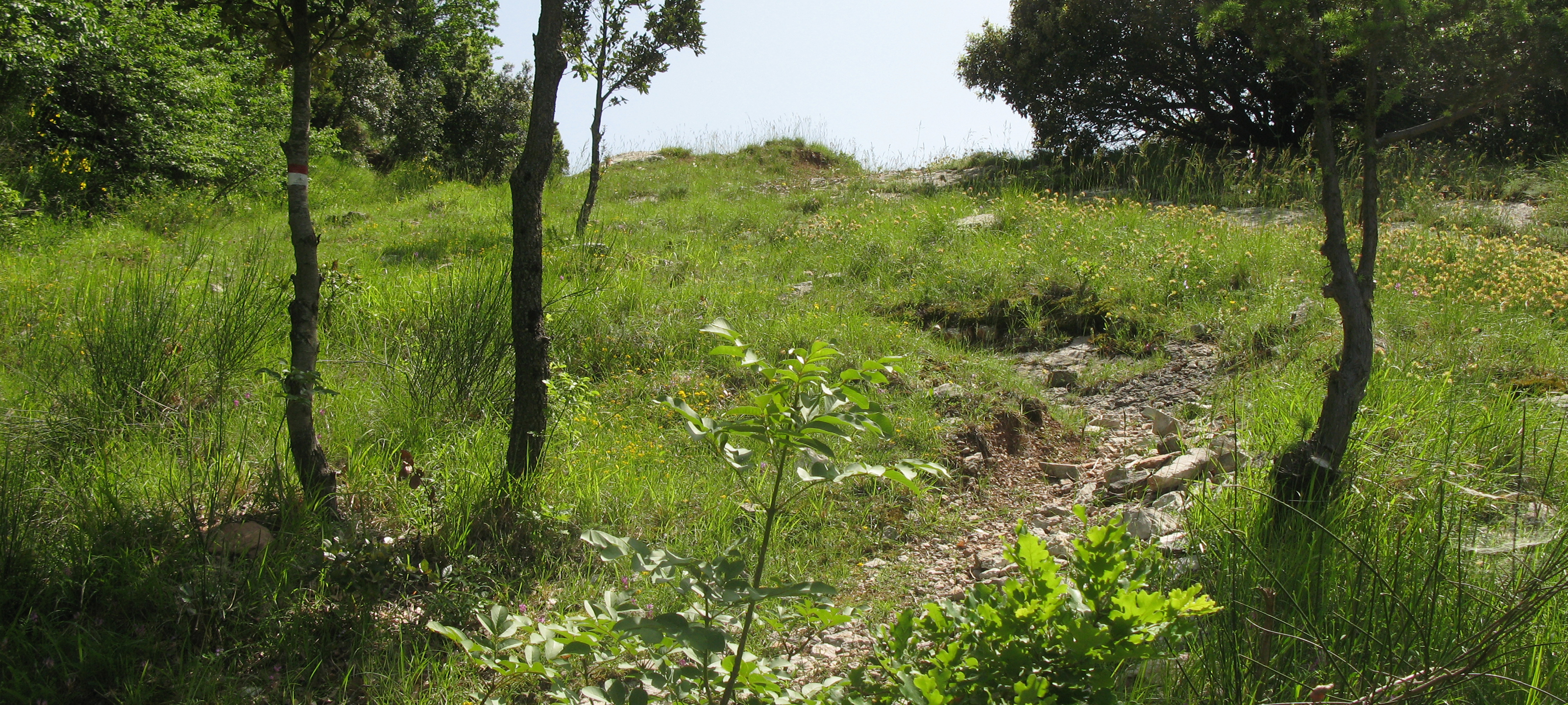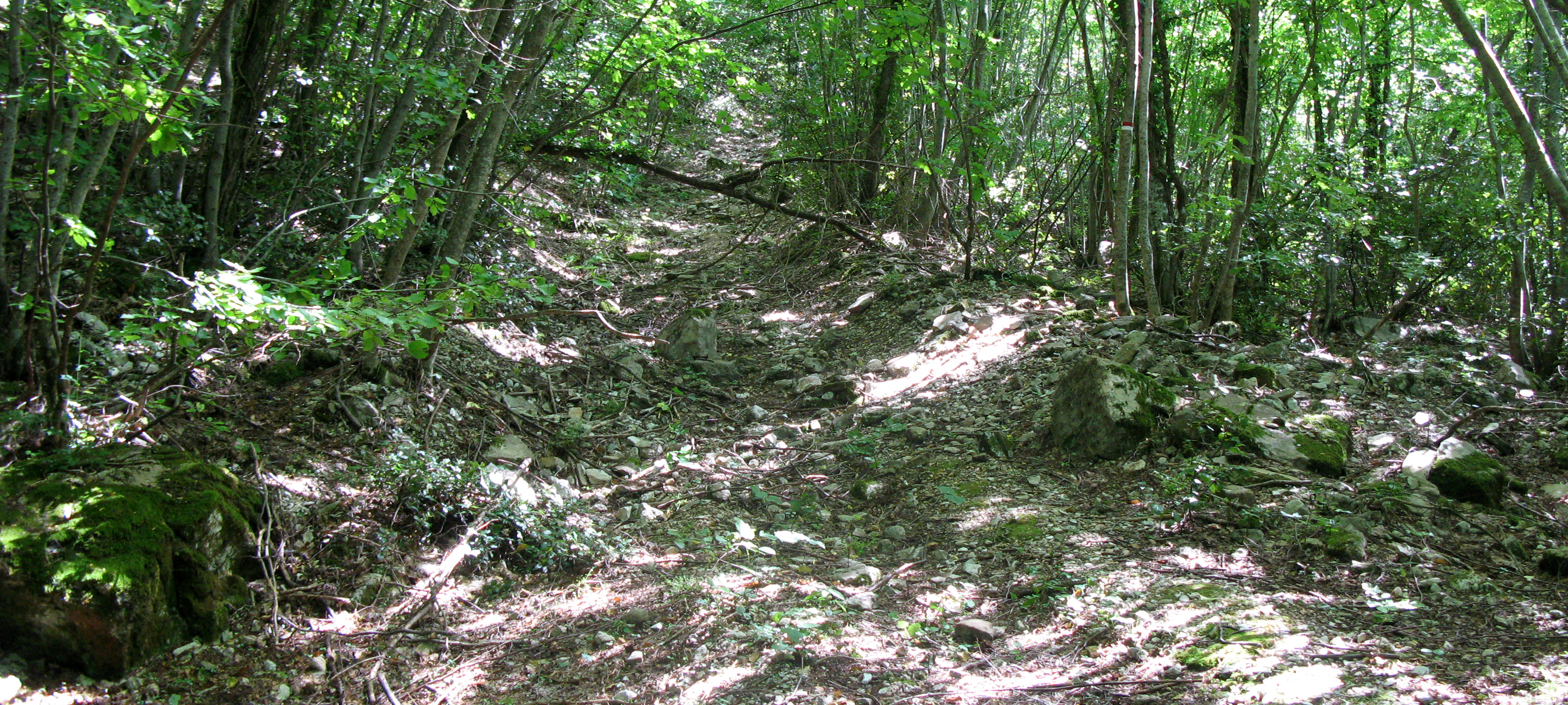 In questo tratto la salita si fa meno dura, con anche alcuni passaggi in falsopiano che risultano essere molto rilassanti dopo le fatiche precedenti, mentre si oltrepassa un impluvio quasi sempre privo di acqua.
