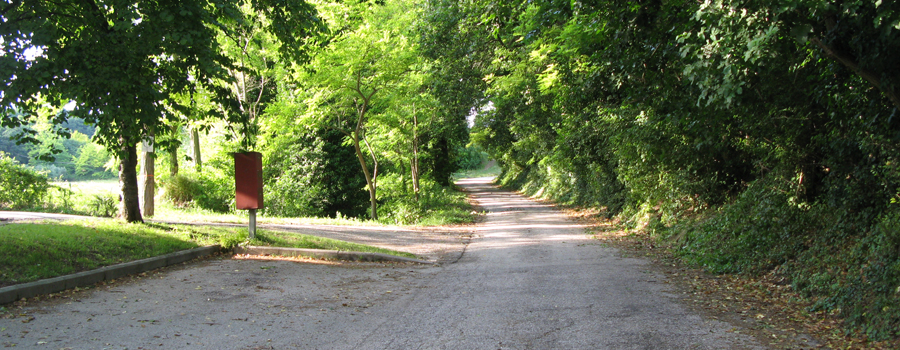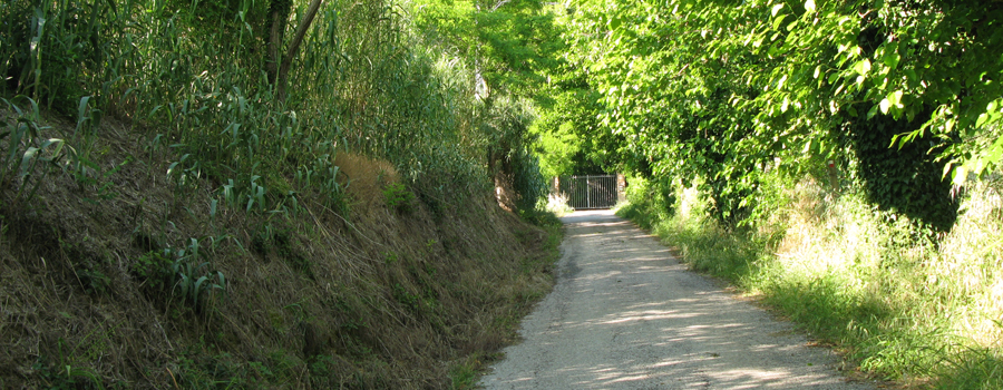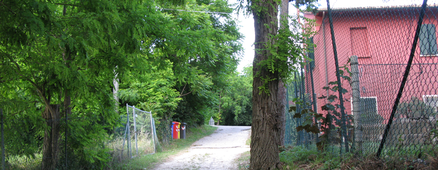 La partenza, segnalata da apposita freccia direzionale, si trova lungo la statale 16, poco prima del cartello che indica l'inizio della frazione di Case Badioli, dalla quale si diparte sulla destra una strada di servizio ad alcune abitazioni, che si segue per alcune centinaia di metri accompagnati all'inizio da una fitta vegetazione boschiva, mentre successivamente l'ambiente si apre permettendo allo sguardo di spaziare su di un ampio e piacevole panorama rurale.