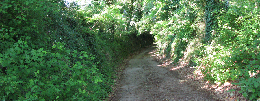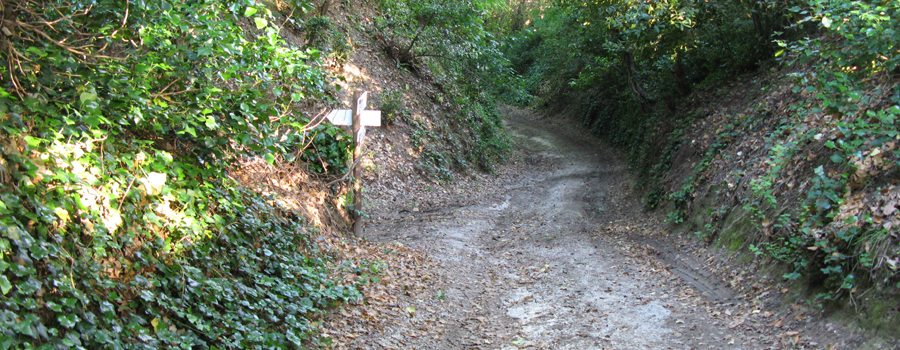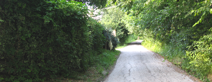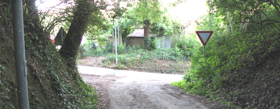 Raggiunta l'estremità opposta della frazione, si ricomincia a salire seguendo una stradina asfaltata che conduce ad alcune abitazioni, superate le quali si tramuta in ripido sentierino che raggiunge prima un agriturismo e successivamente la strada Panoramica, in corrispondenza di una curva.
