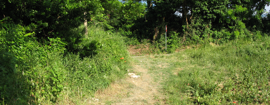 La partenza del sentiero coincide con la strada Croce Vecchia, via asfaltata che incrocia la statale a poche decine di metri dall'abitato di Case Badioli. Nel primo tratto si segue la via attraverso le case, superate le quali l'asfaltata si tramuta in sentiero ed inizia a salire in maniera un po' più ripida (niente di particolarmente impegnativo, comunque) attraversando un tratto boschivo, e giungendo infine, dopo aver attraversato un piccolo praticello, al trivio dove si incrociano la strada Panoramica, che in questo tratto coincide con i sentieri 151 e 156 e la strada che sale dalla chiesa di Colombarone, contrassegnata dal numero 156b.