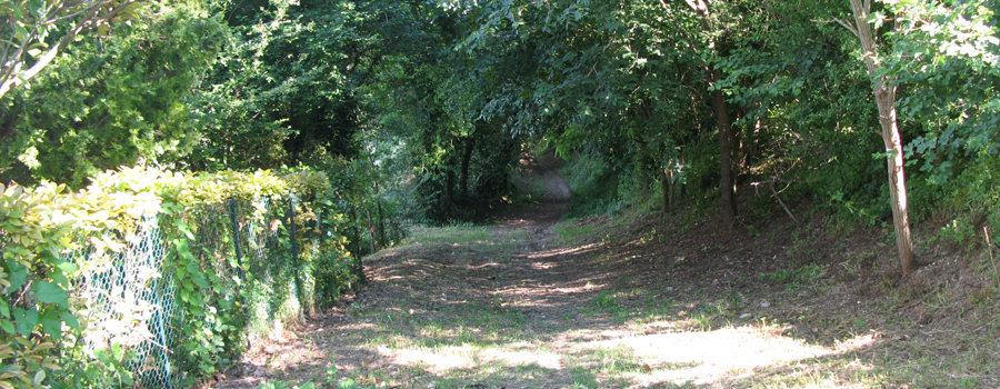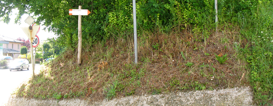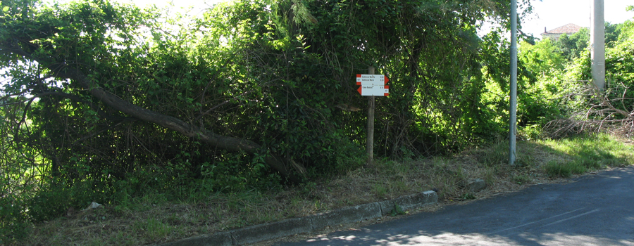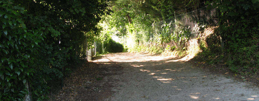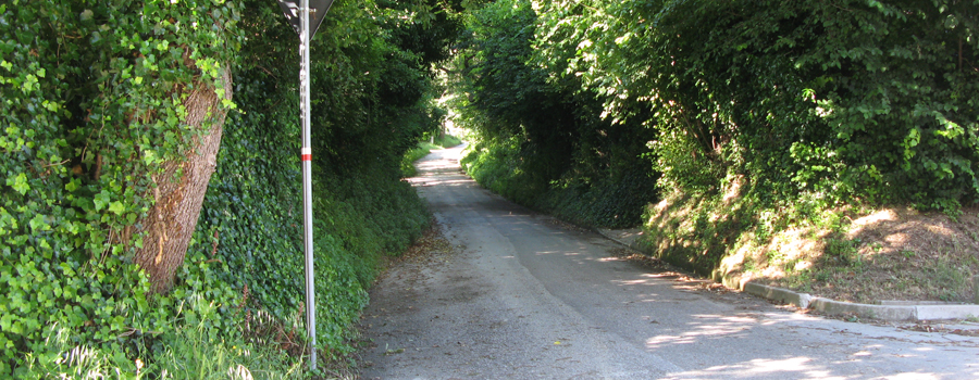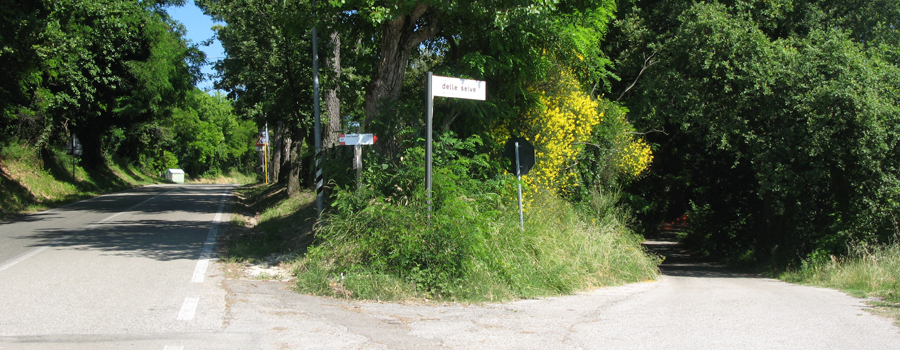 Da qui si prosegue inoltrandosi nel paese, seguendo i numerosi segni presenti ai margini della sede stradale, imboccando e percorrendo per intero Via della Cupa, prima di svoltare a sinistra su Strada Fonte, da dove inizia un nuovo tratto in salita. Si percorre la via costeggiando alcune abitazioni e si giunge quindi ad un nuovo incrocio, in corrispondenza del quale si abbandona l'asfaltata per svoltare a sinistra su di una stradina bianca che si inoltra nei verdi campi soprastanti.