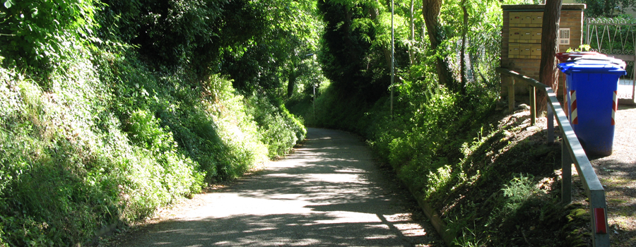 Proseguendo la risalita si incontrano ben presto le prime abitazioni della frazione di Vigna del Mare, dove termina il tratto sbrecciato per confluire nuovamente in una via asfaltata, che guadagna rapidamente quota costeggiando le case.