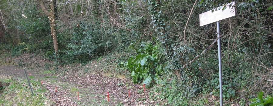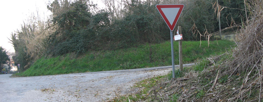 Gradualmente, proseguendo nella salita, gli orti lasciano spazio ad una vegetazione spontanea a basso fusto, che s’infittisce man mano che si guadagna quota, fino al punto in cui l’ambiente si apre improvvisamente, nei pressi della strada di servizio ad alcune abitazioni, a pochi metri dal terzo tornante della strada provinciale che attraversa l’intero parco.